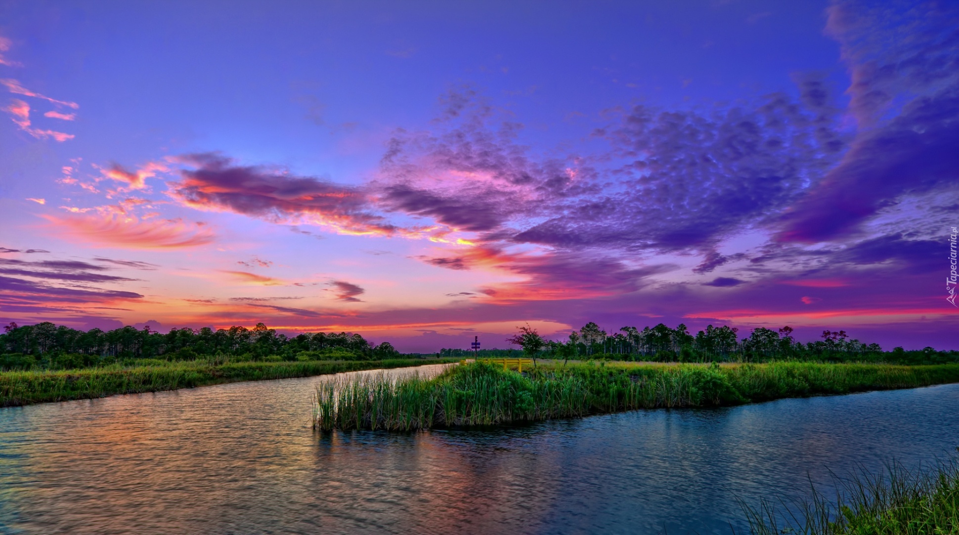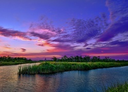 Edytor tapety: Jezioro, Drzewa, Trawy, Zachód, Słońca