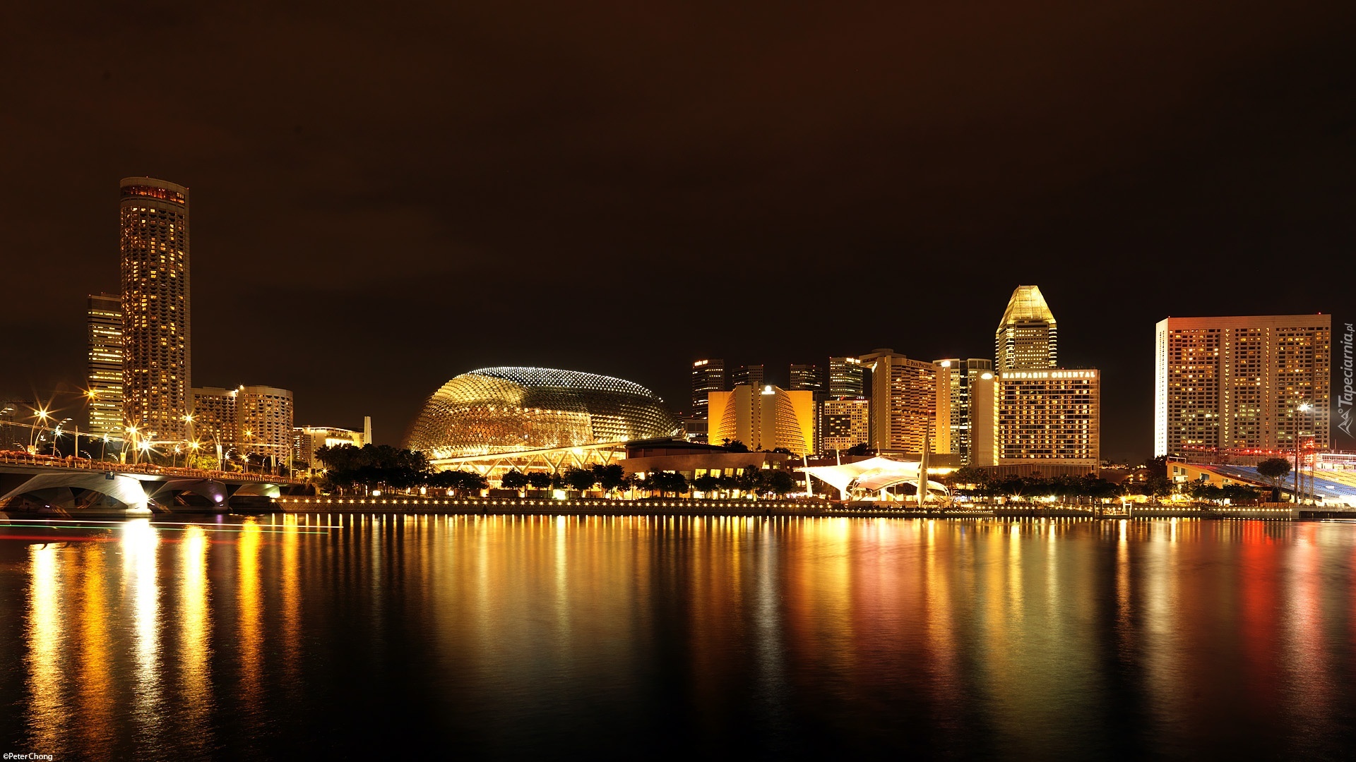 Edytor tapety: Drapacze Chmur, Oświetlenie, Singapur
