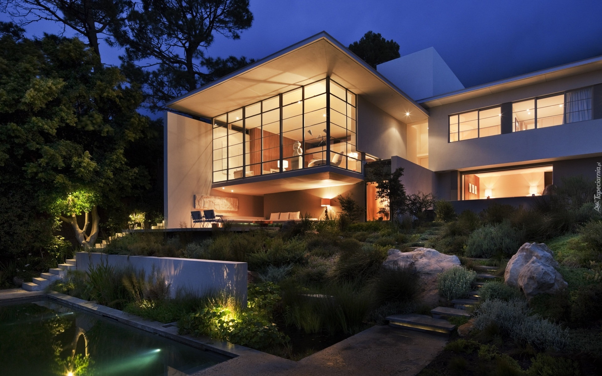 Edytor tapety: Oświetlony, Dom, Ogród
