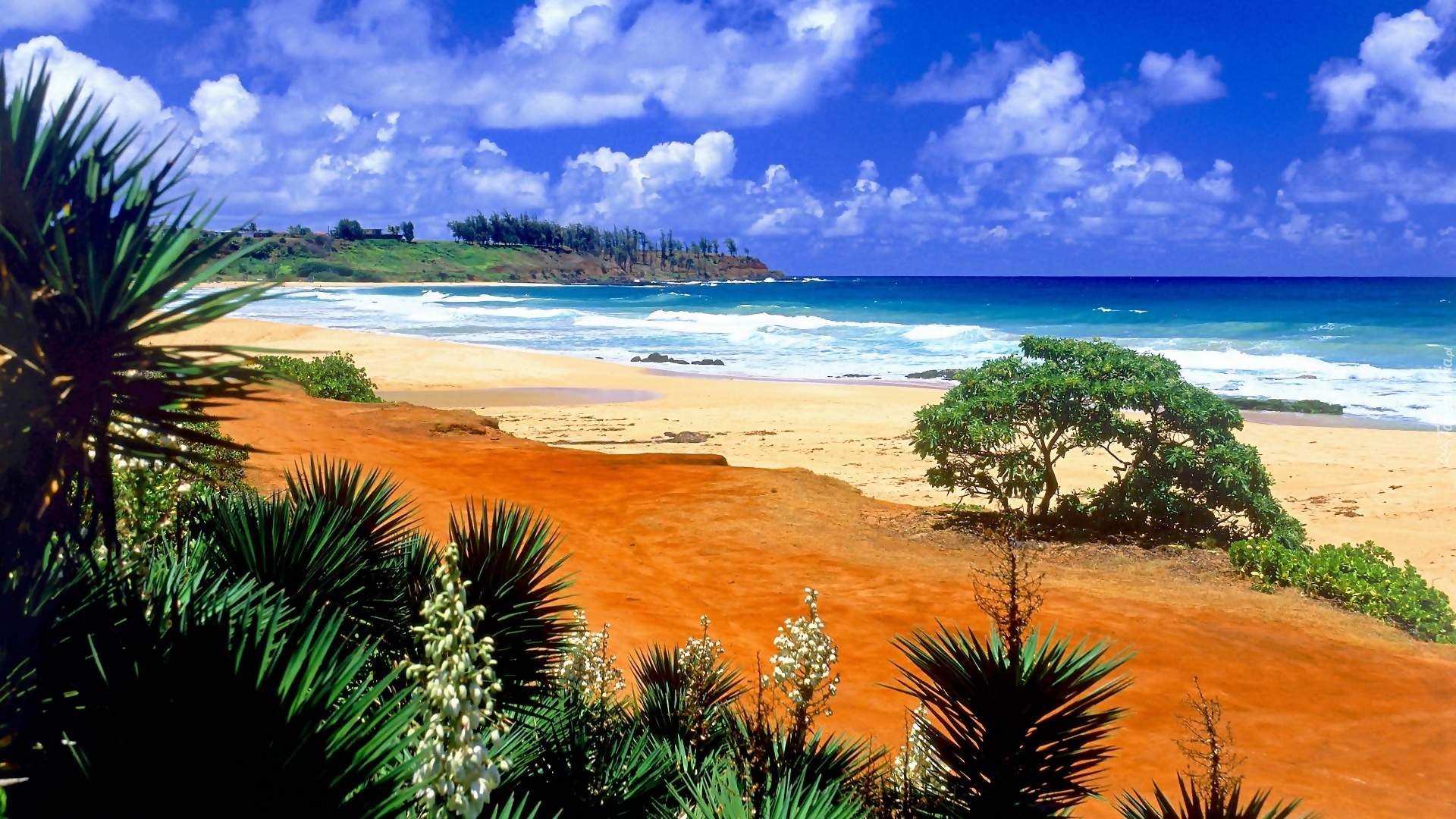 Edytor tapety: Morze, Plaża, Palmy, Obłoki