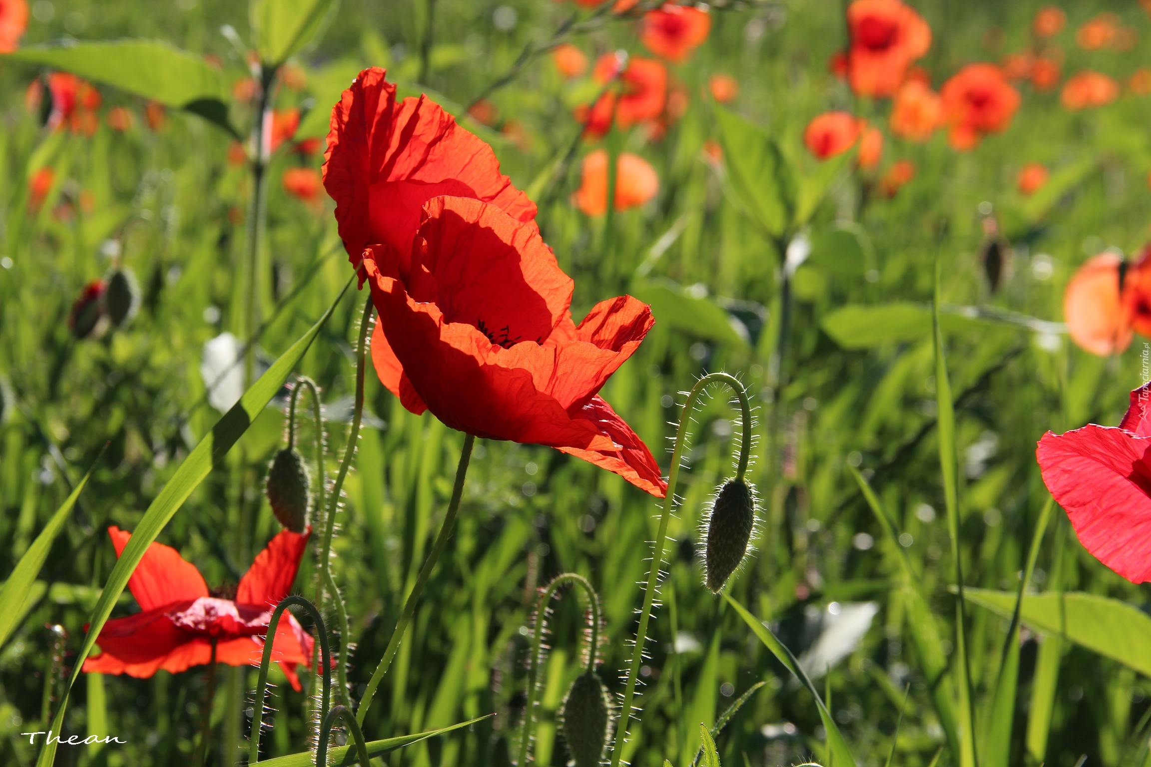 Edytor tapety: Czerwone, Maki, Łąka