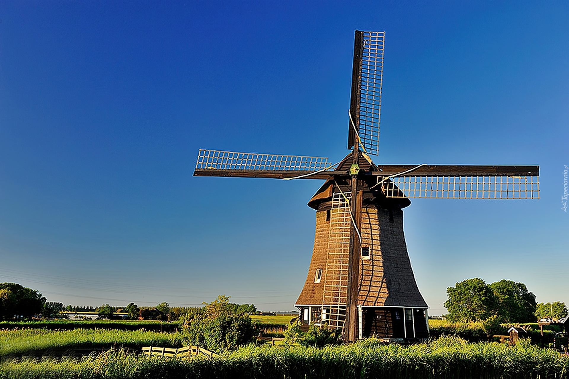 Edytor tapety: Wiatrak, Niebo, Pole, Łąka
