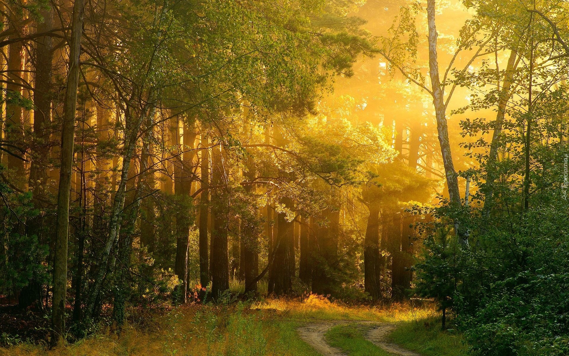 Edytor tapety: Las, Droga, Przbijąjące, Światło