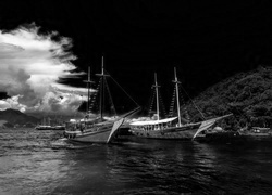 Edytor tapety: Żaglowce, Morze, Góry, Chmury
