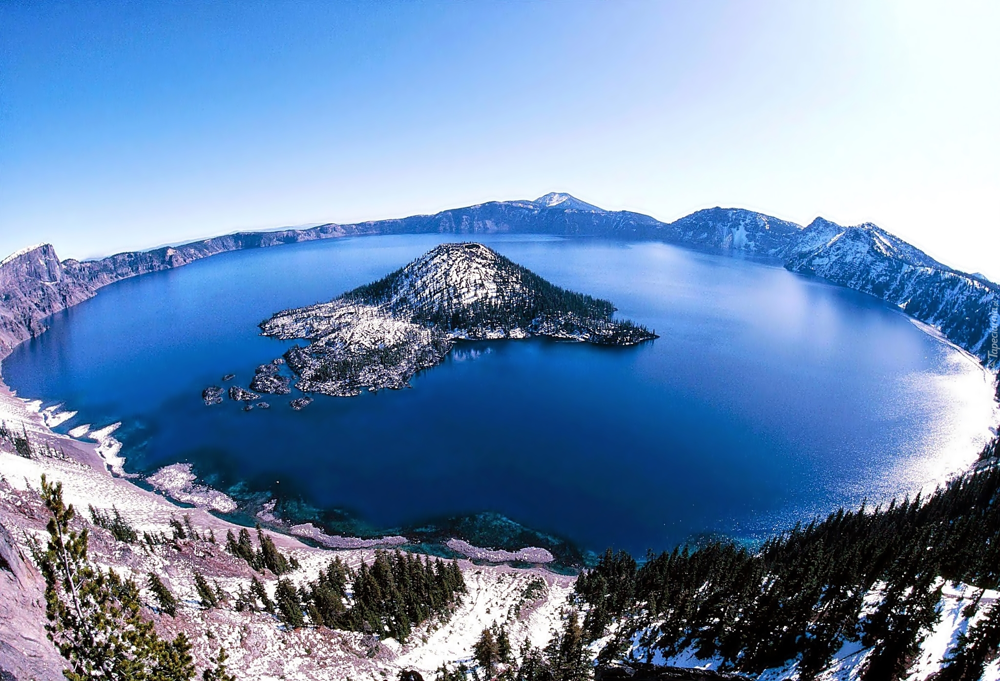 Edytor tapety: Zima, Jezioro, Wulkaniczne, Las
