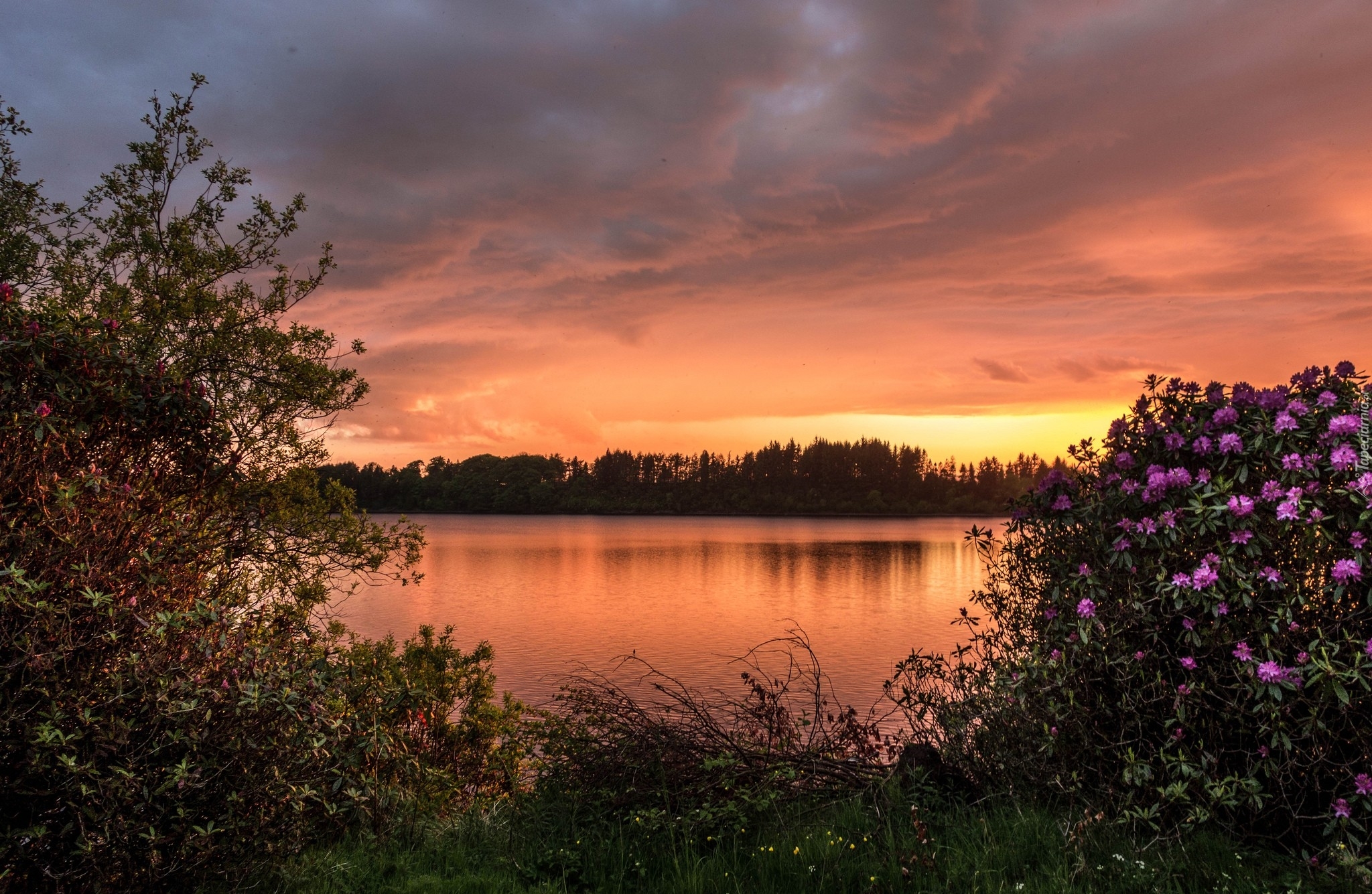 Edytor tapety: Rzeka, Drzewa, Krzewy, Zachód, Słońca