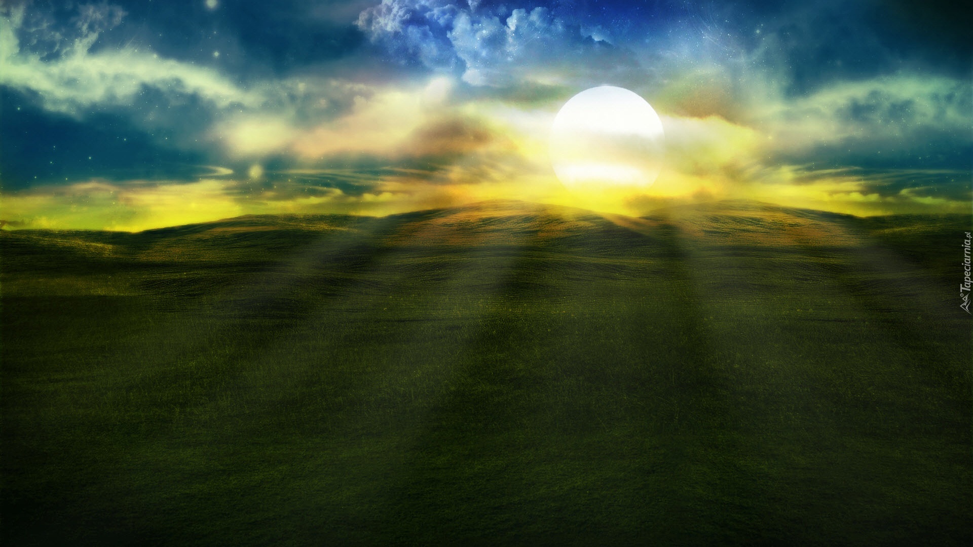 Edytor tapety: Łąka, Chmury, Zachód Słońca