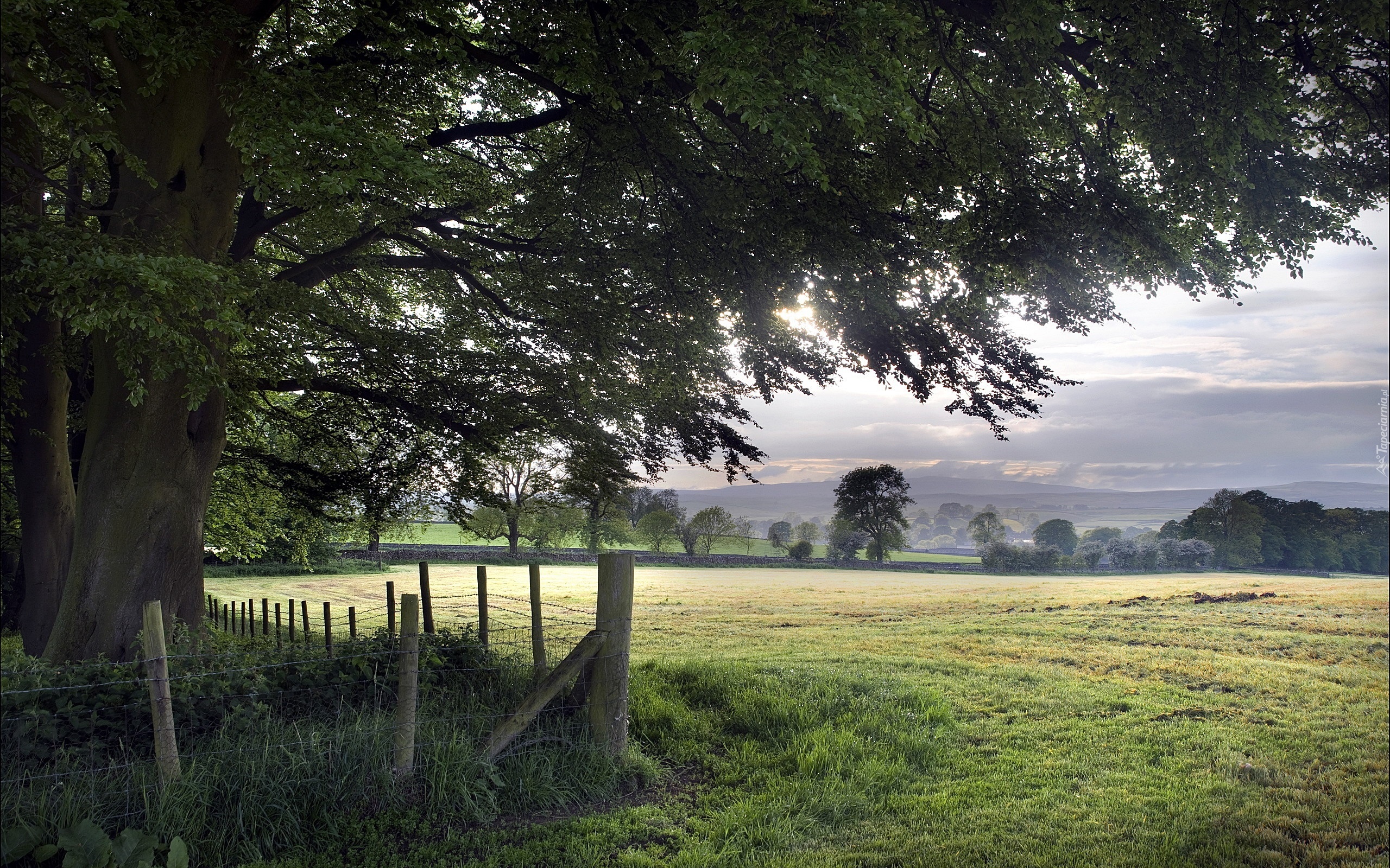 Edytor tapety: Łąka, Drzewo, Płot