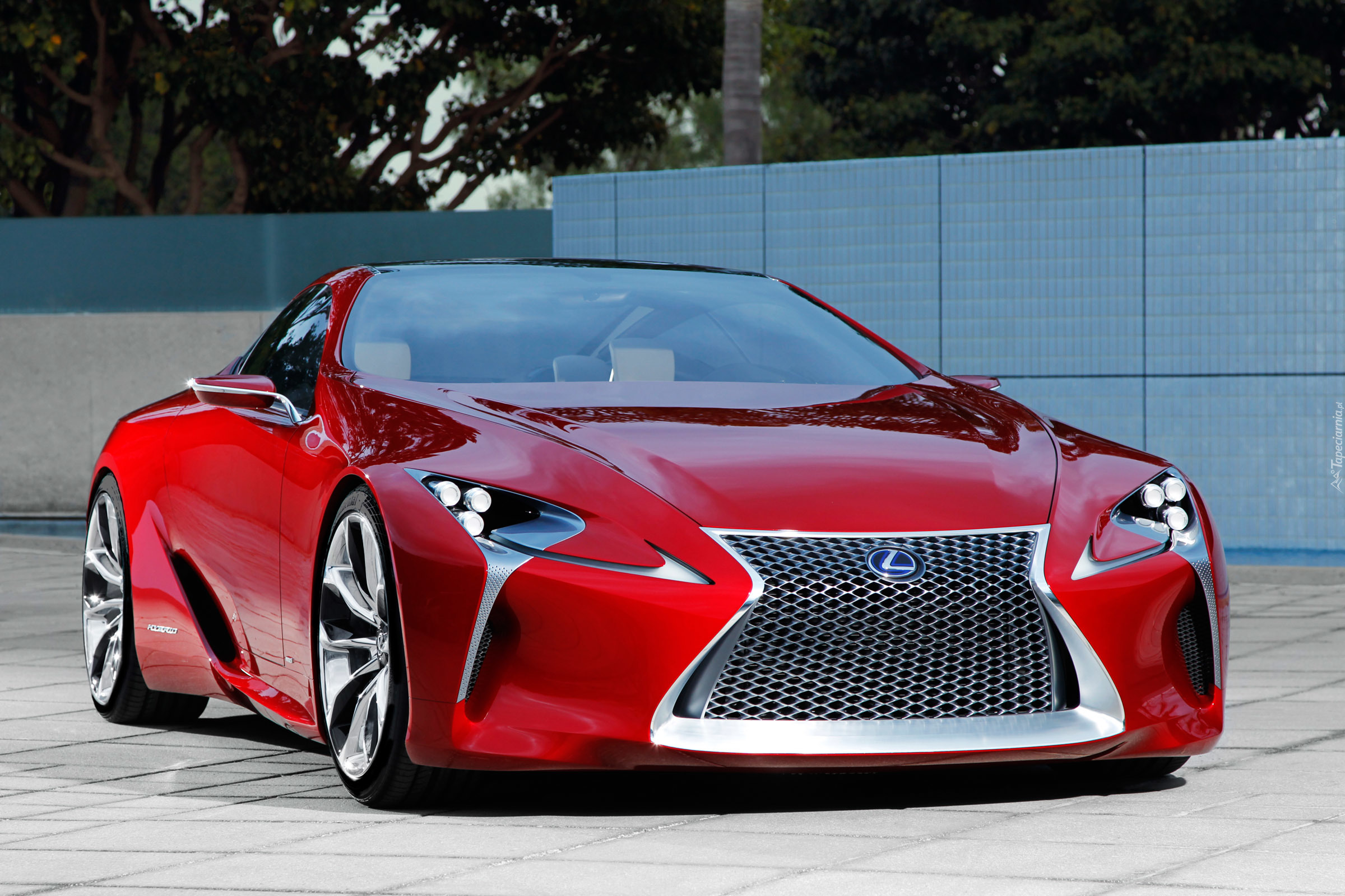 Edytor tapety: Drzewa, Ogrodzenie, Czerwony, Lexus, LF-LC, 2012