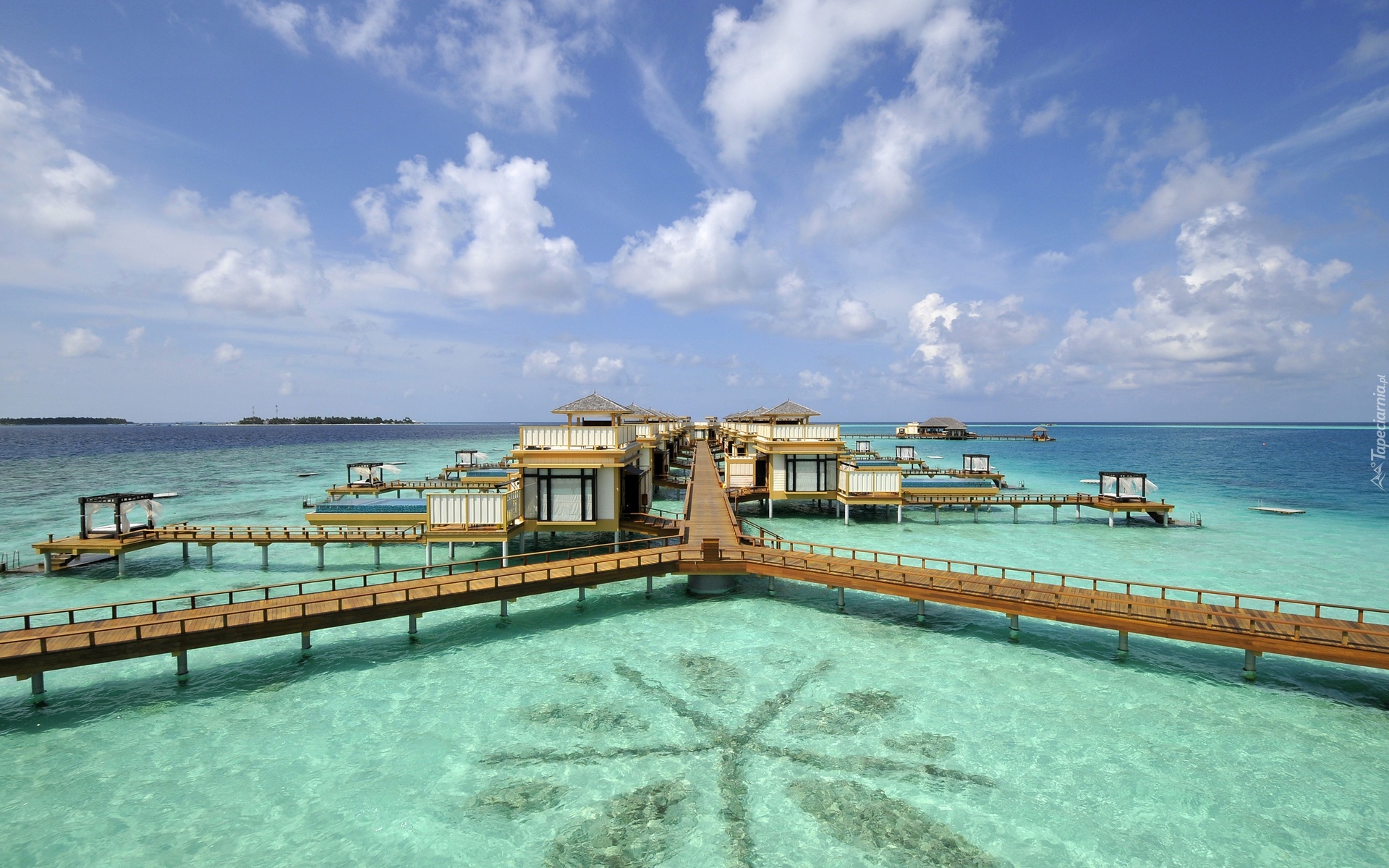 Edytor tapety: Morze, Domy, Na, Palach, Pomost, Tropiki
