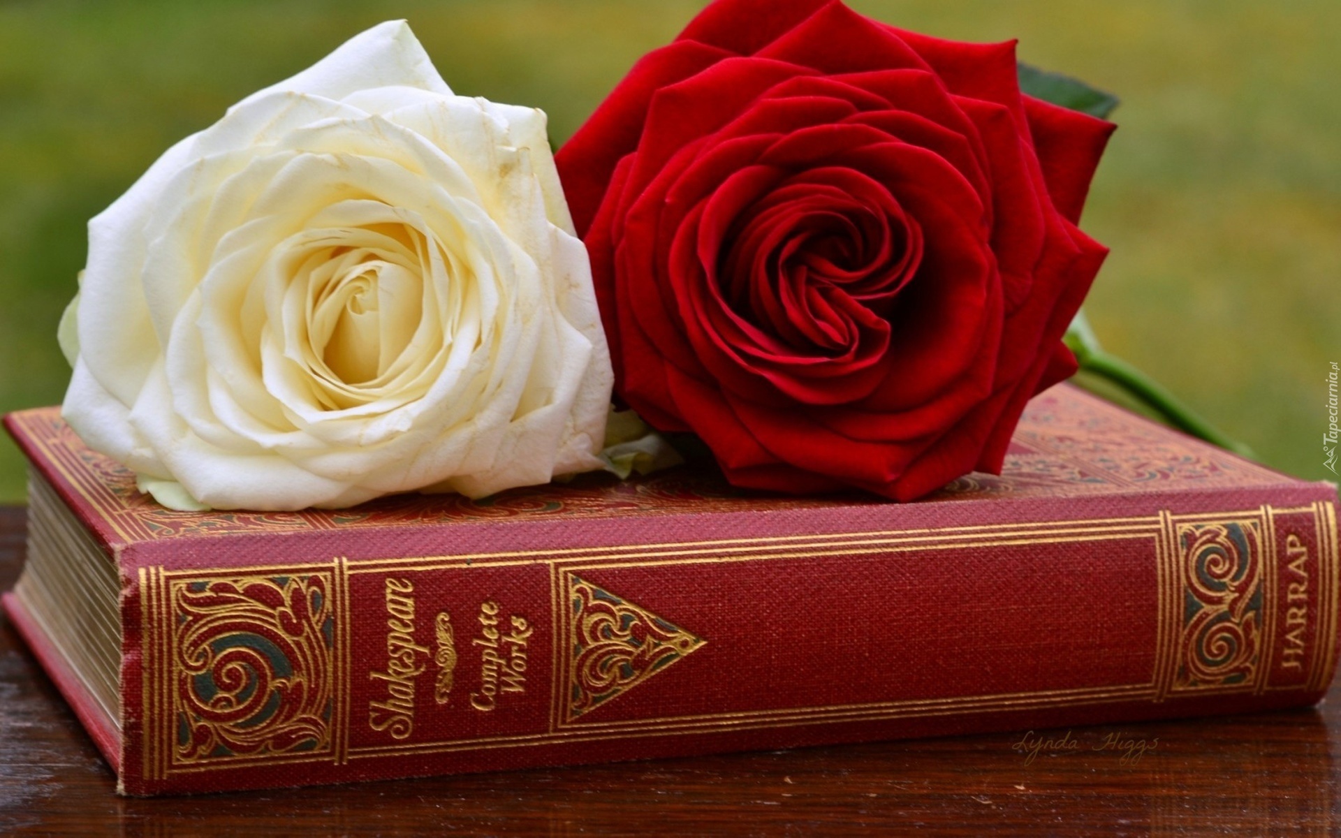 Edytor tapety: Biała, Czerwona, Róża, Książka, Kompozycja