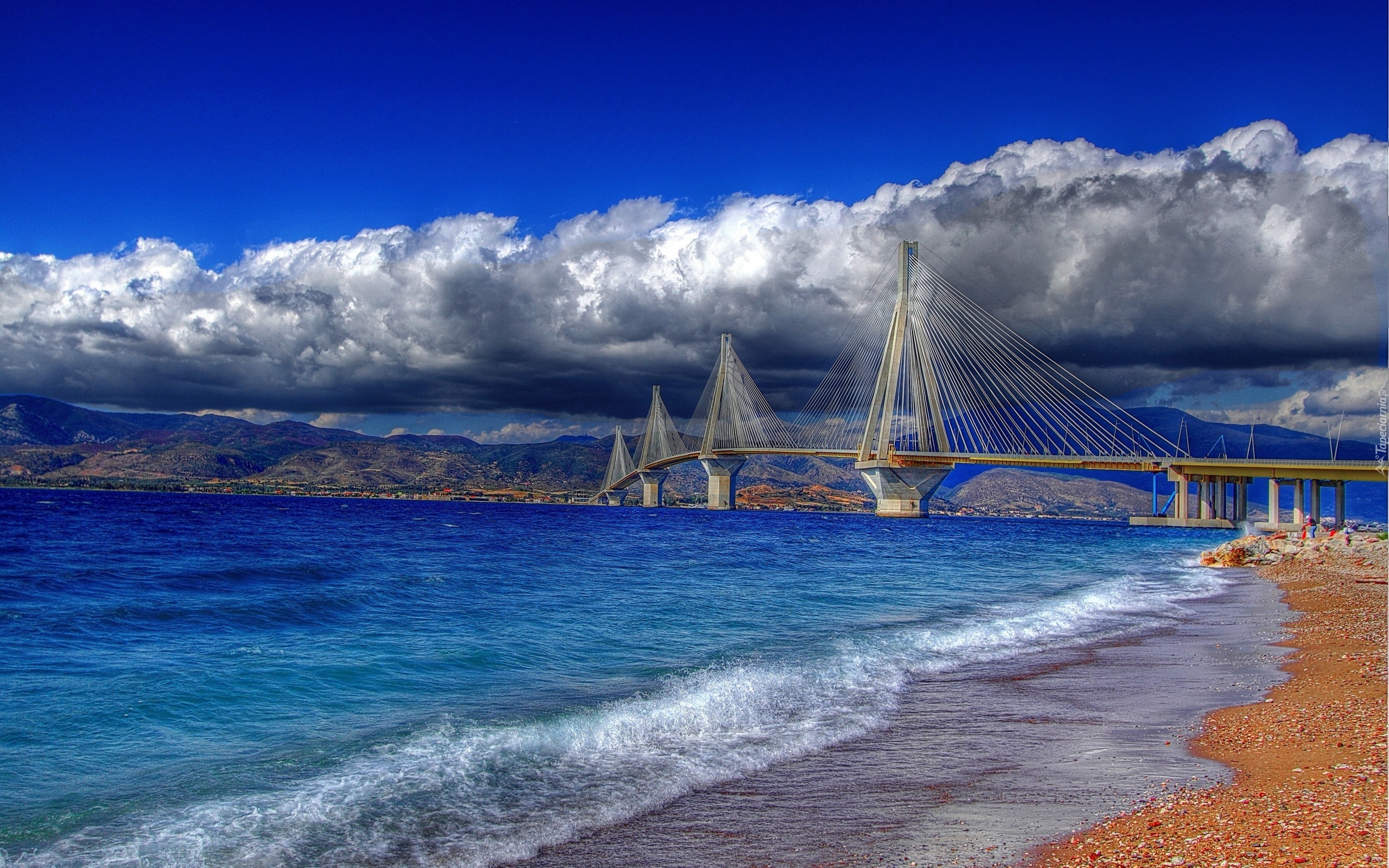 Edytor tapety: Rzeka, Most, Góry, Chmury