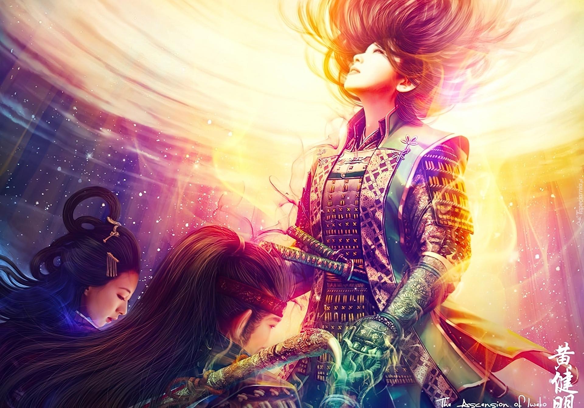 Edytor tapety: Dwie, Kobiety, Mężczyzna, Samuraj