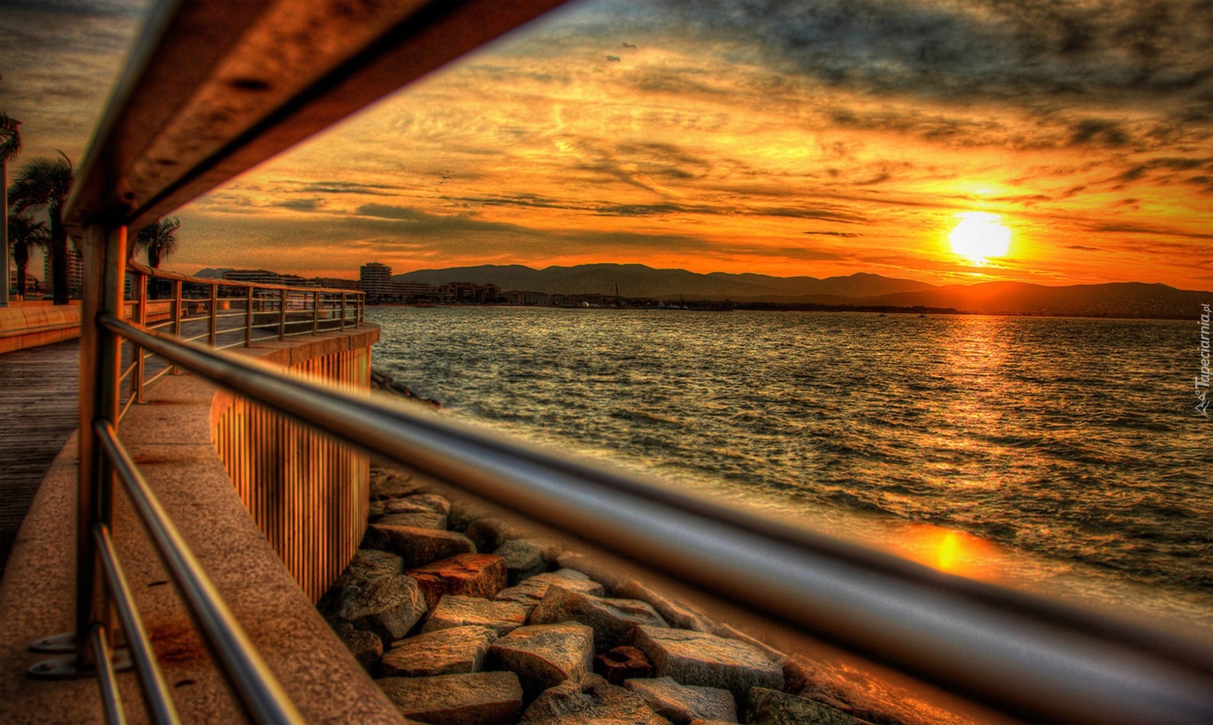 Edytor tapety: Zachód, Słońca, Morze, Poręcz
