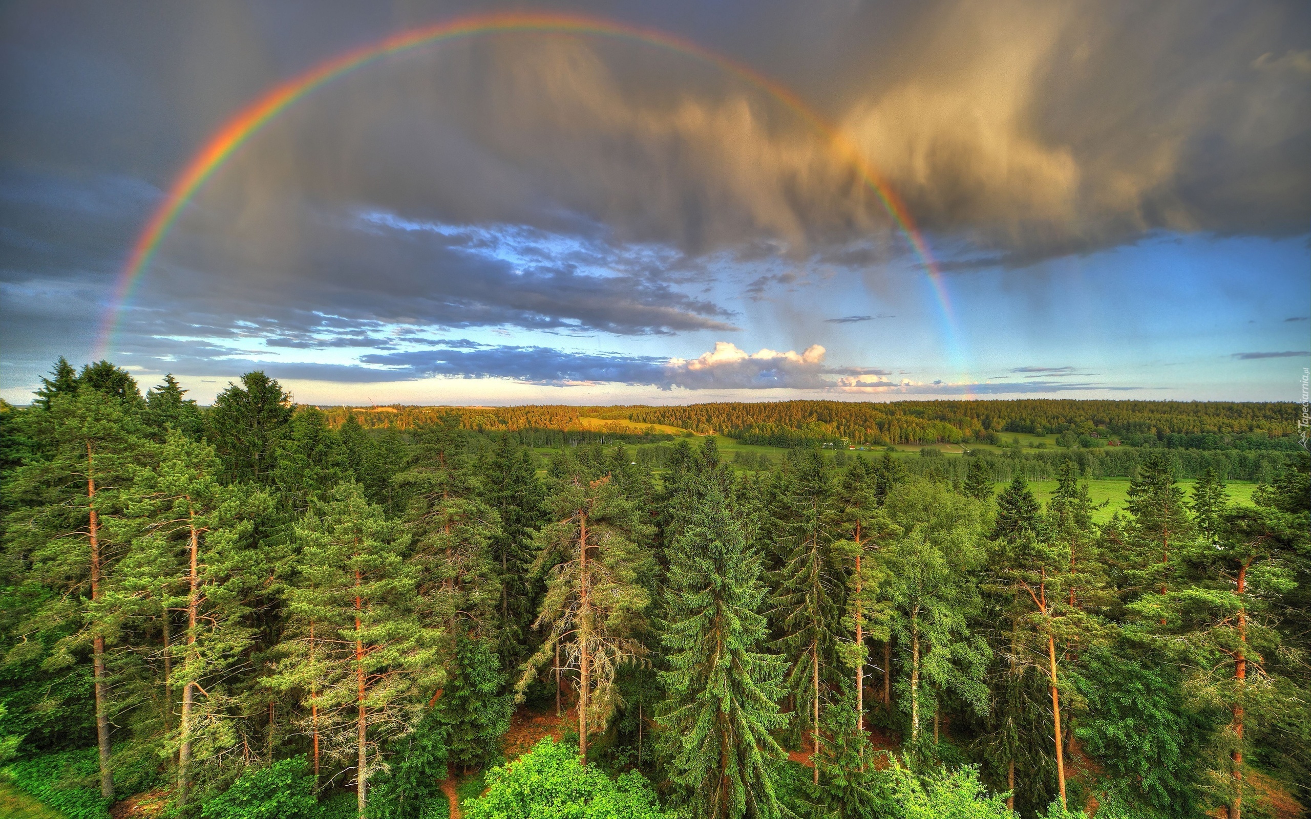 Edytor tapety: Lasy, Łąki, Tęcza, Chmury