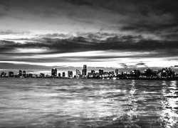 Edytor tapety: Morze, Drapacze, Chmur, Miasto, Nocą