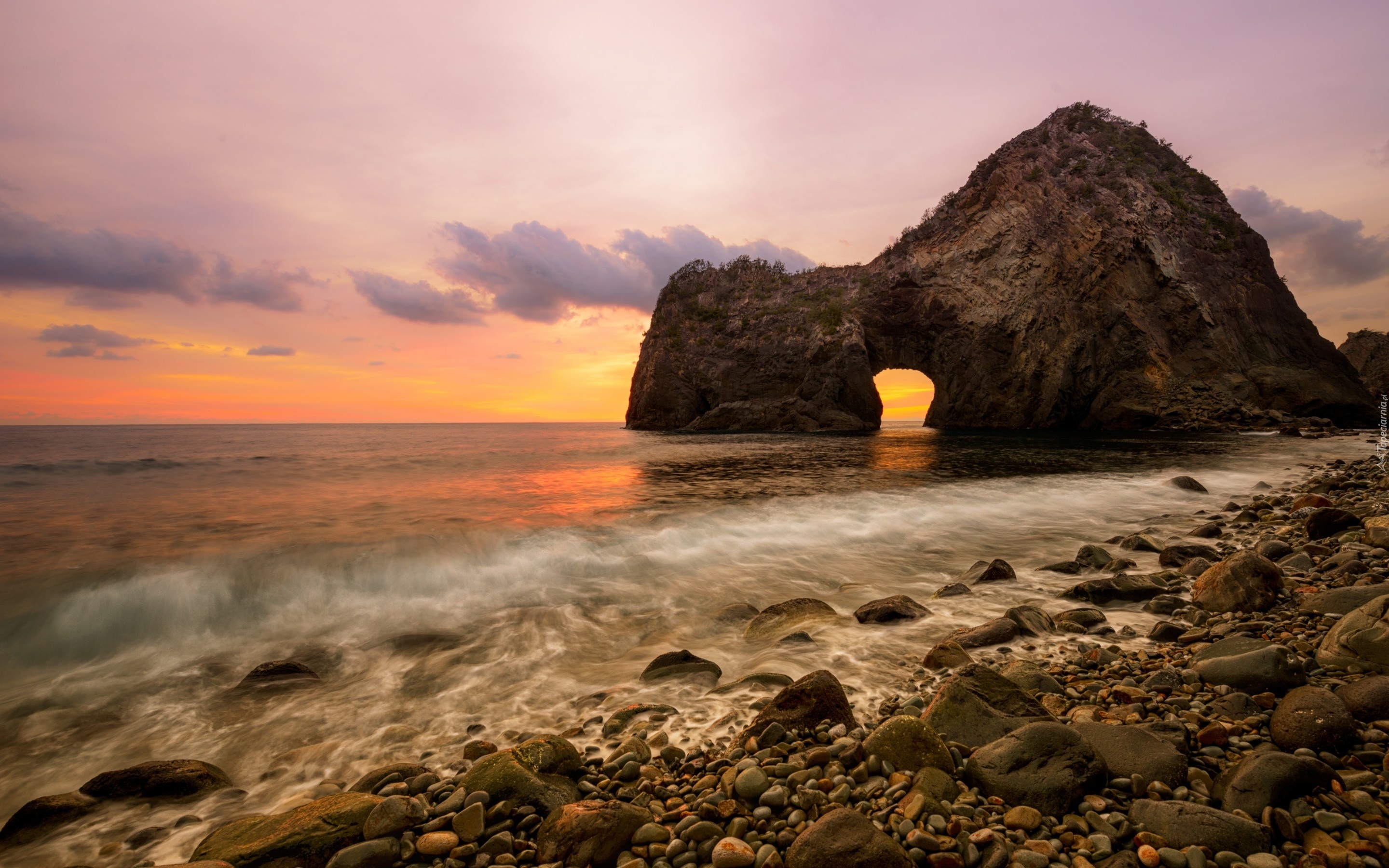 Edytor tapety: Zachód, Słońca, Morze, Kamienie