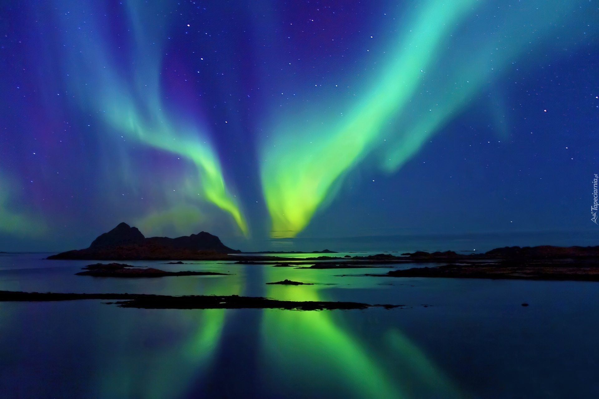 Edytor tapety: Zorza, Polarna, Odbicie, Skały