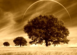 Edytor tapety: Pola, Drzewa, Chmury