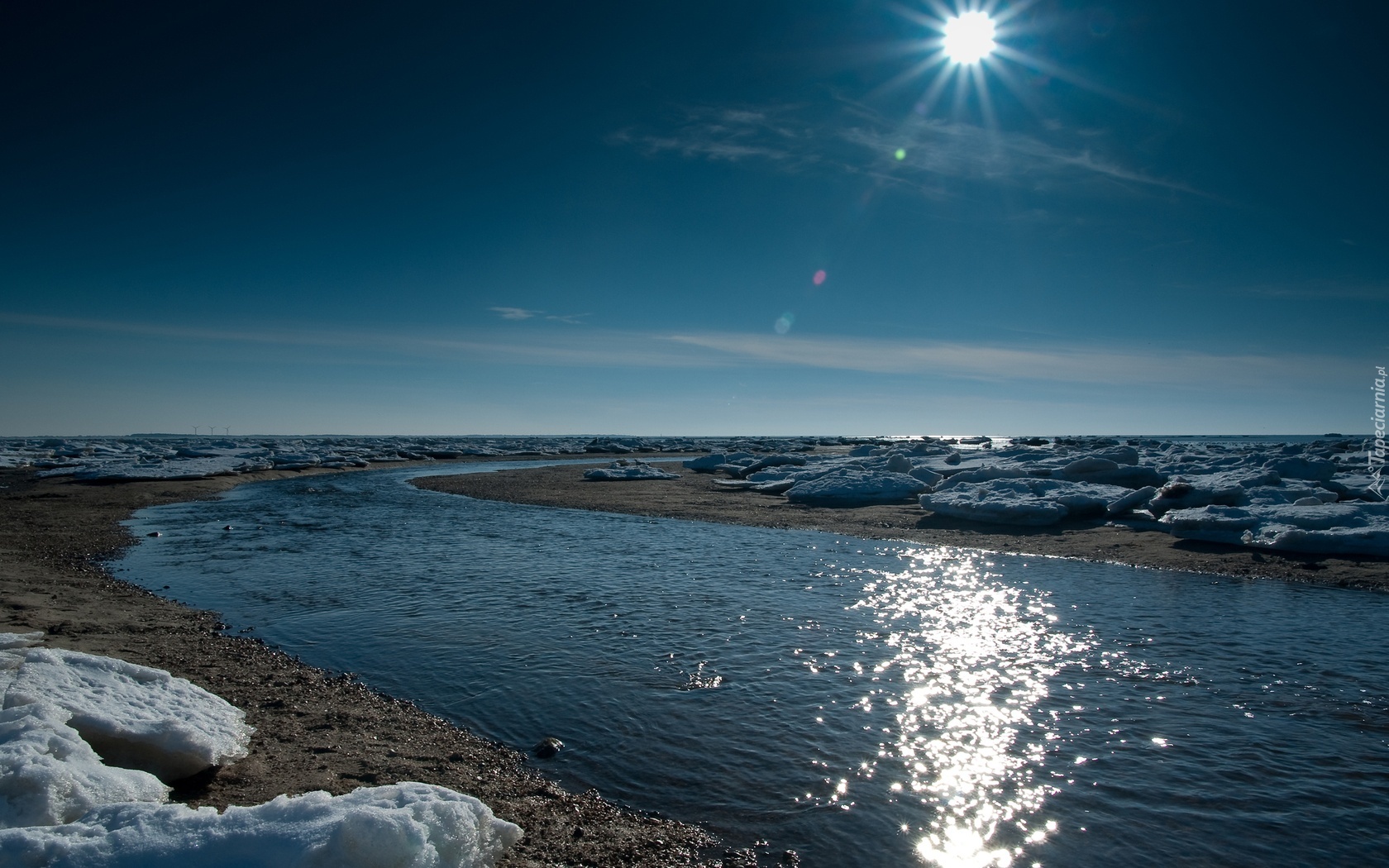 Edytor tapety: Lód, Rzeka, Słońce