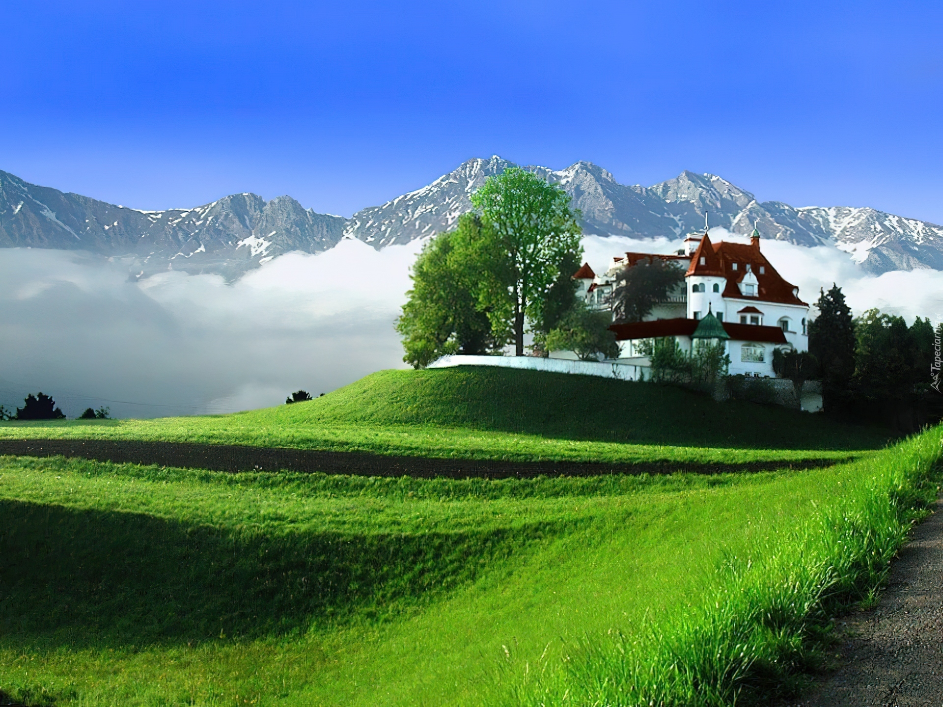 Edytor tapety: Góry, Domek, Drzewko