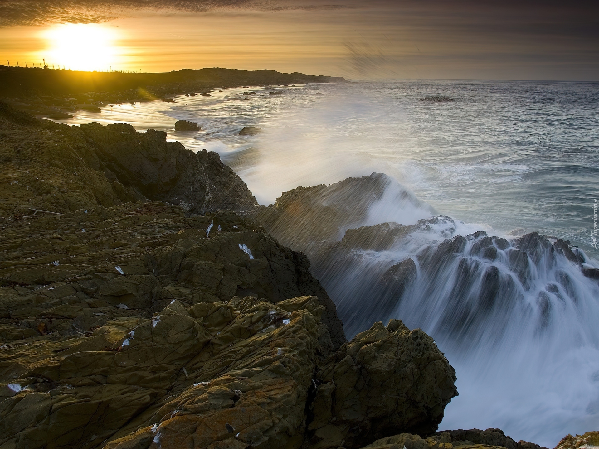 Edytor tapety: Morze, Skały, Zachód Słońca