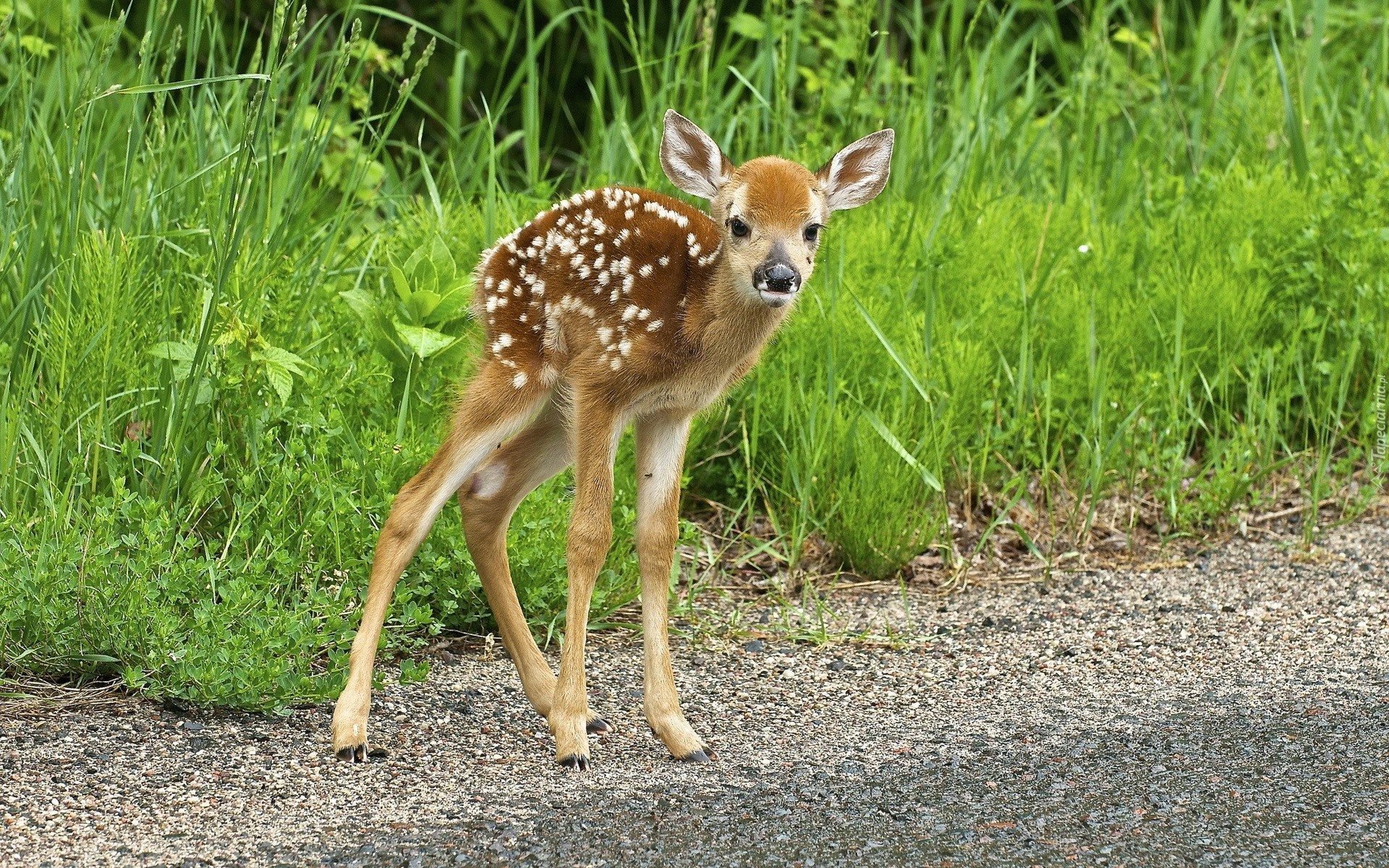 Edytor tapety: Młoda, Sarenka, Las, Droga