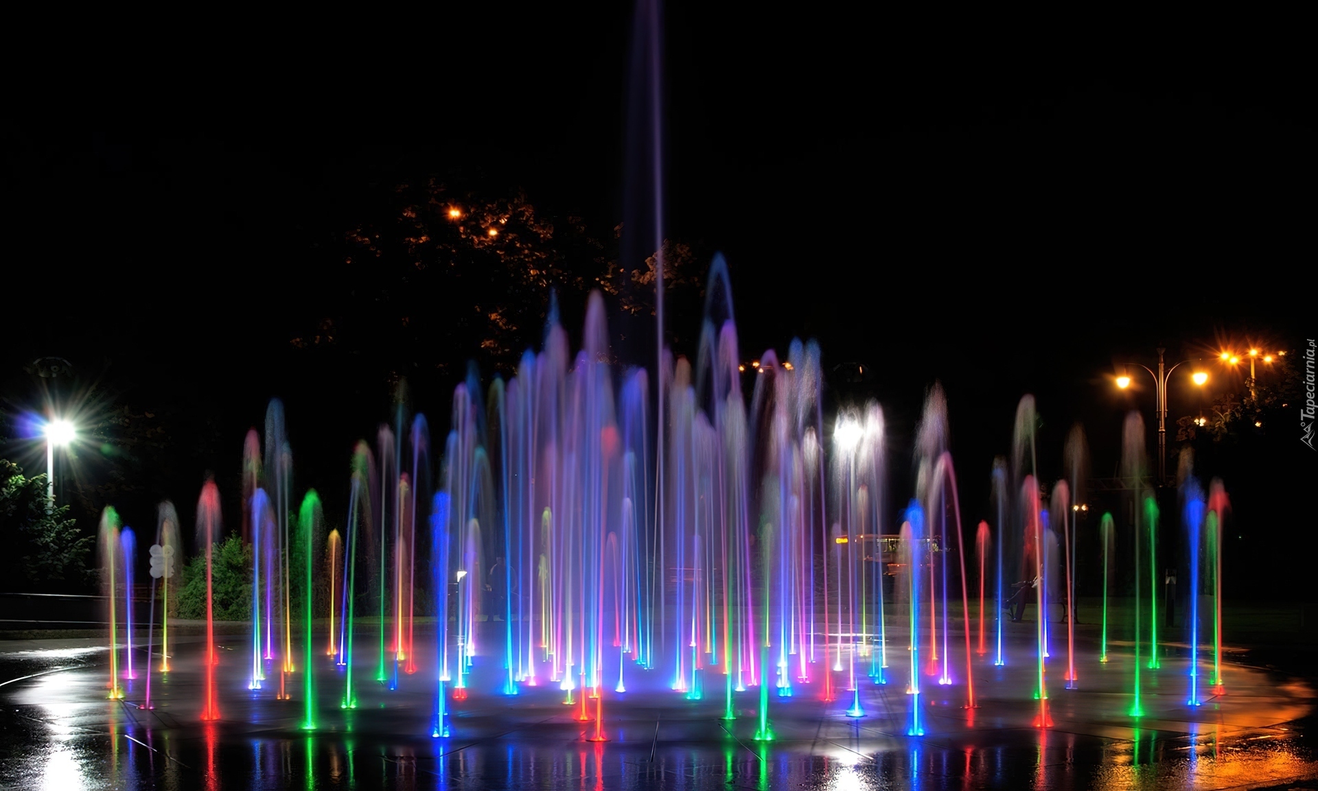 Edytor tapety: Kolorowa, Światła, Fontanna