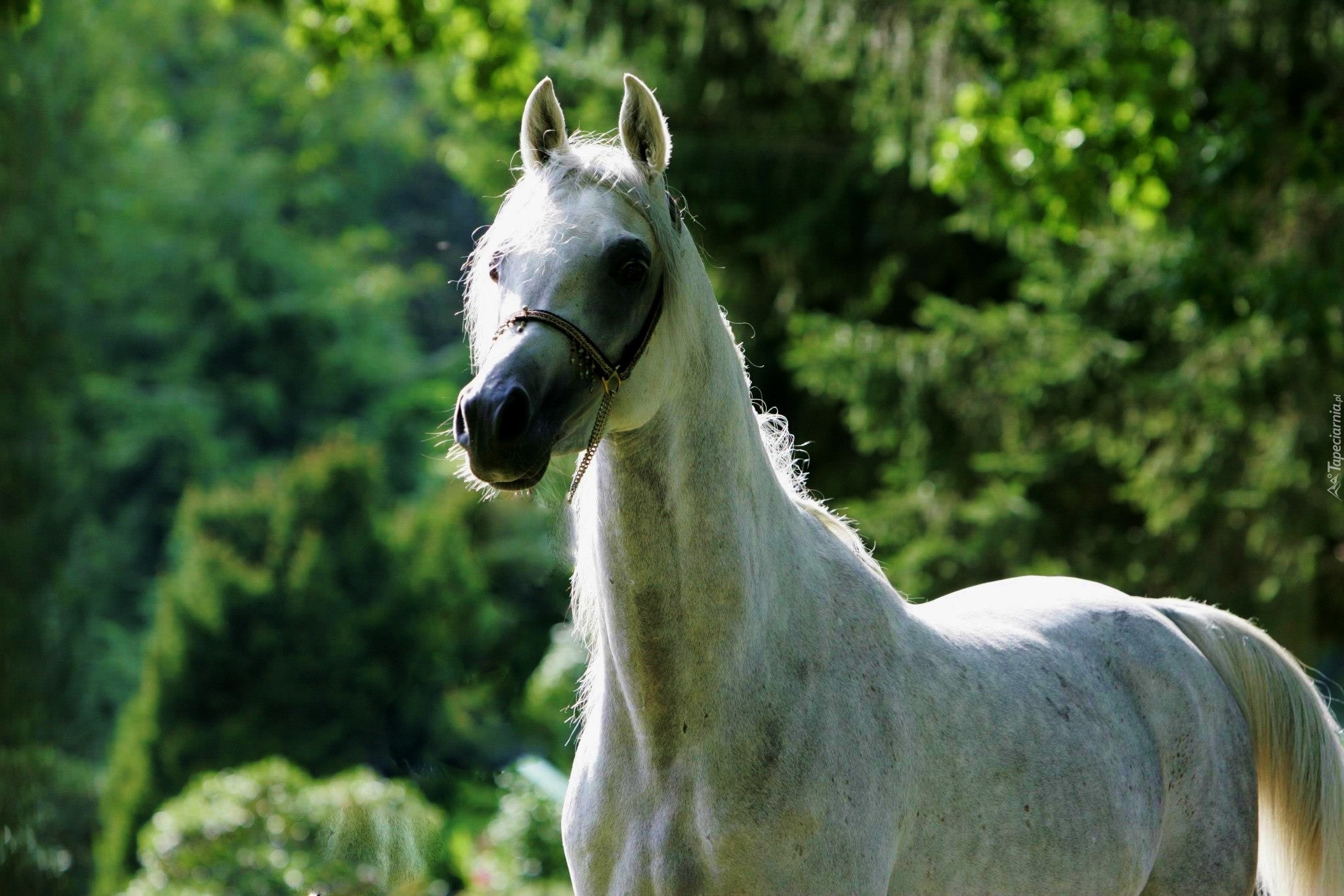 Edytor tapety: Biały, Koń, Arab, Zieleń