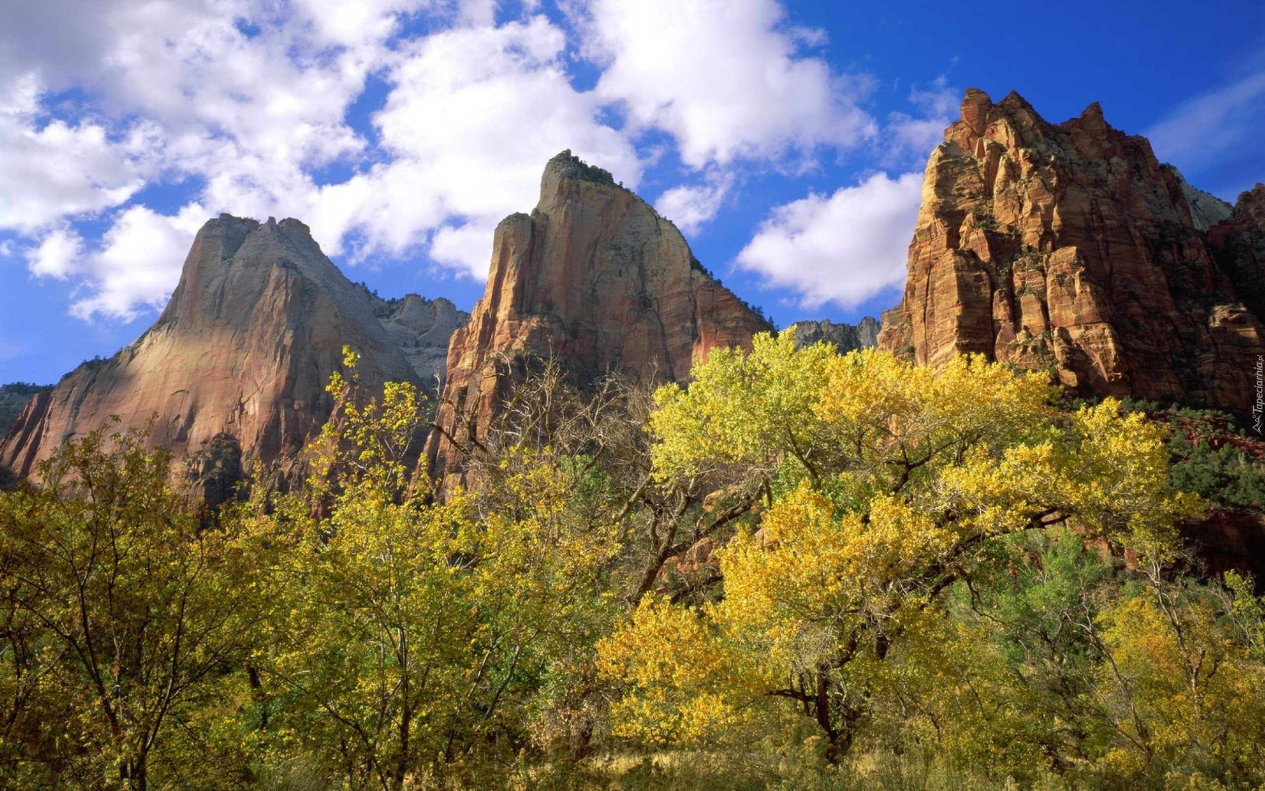 Edytor tapety: Góry, Jesień, Chmurki, Drzewa