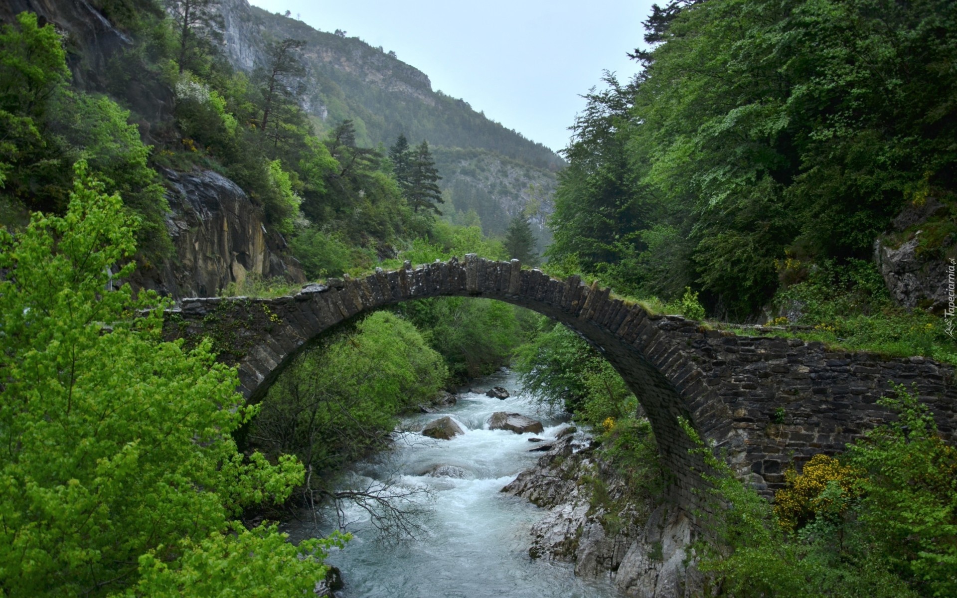 Edytor tapety: Rzeka, Most, Góry, Lasy