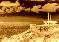 Edytor tapety: Wybrzeże, Skały, Restauracja, Zachód, Słońca