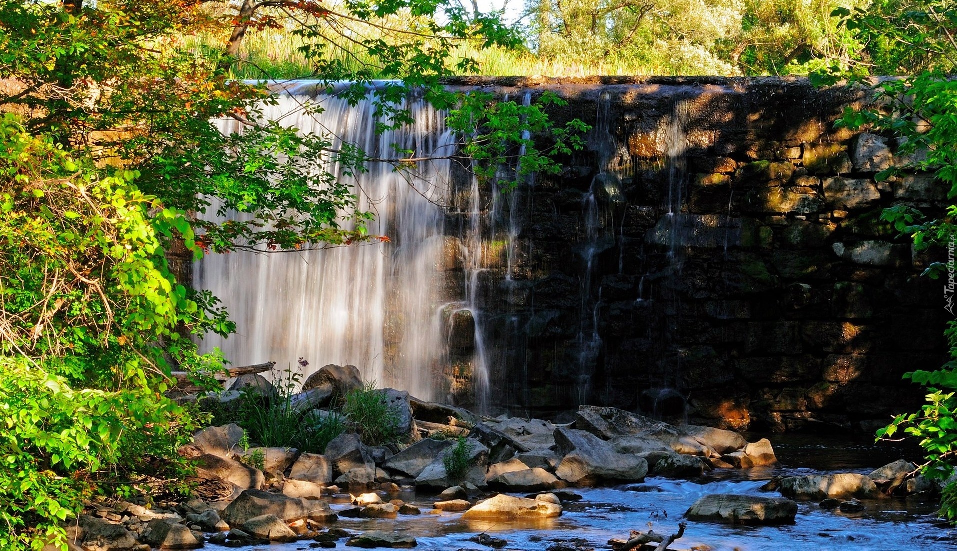 Edytor tapety: Rzeka, Wodospad, Kamienie, Drzewa
