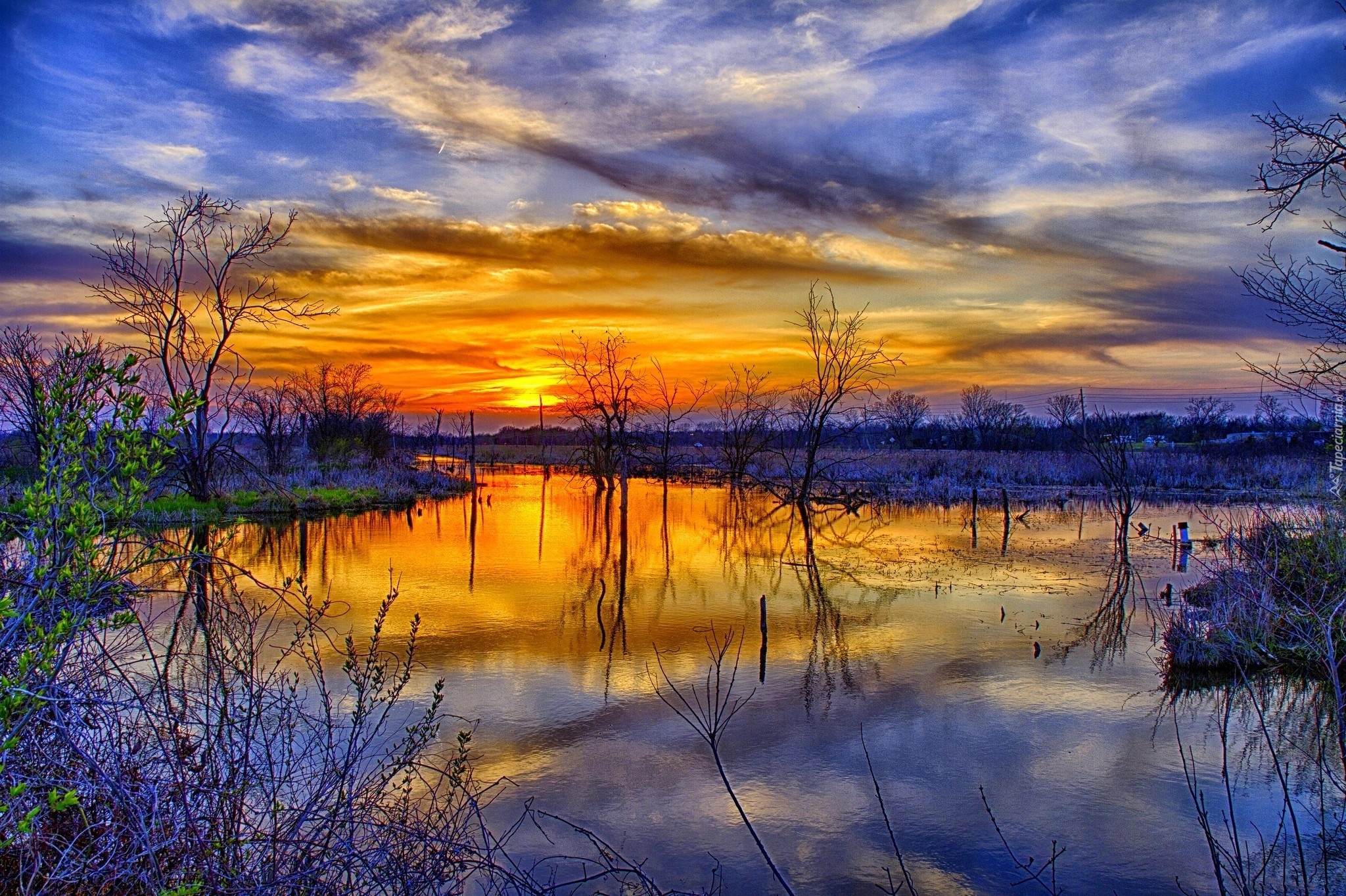 Edytor tapety: Jezioro, Zachód, Słońca, Drzewa