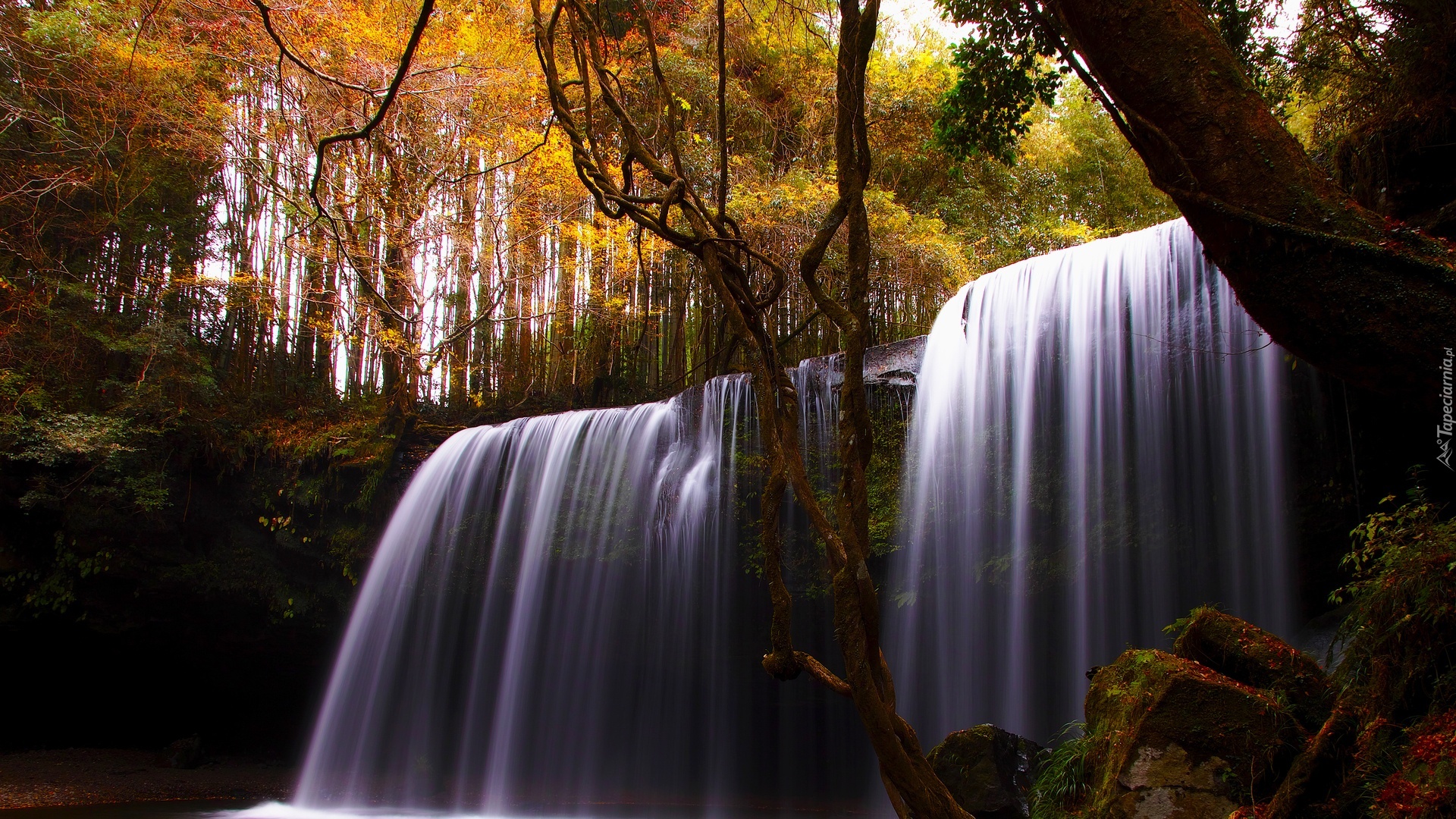 Edytor tapety: Wodospad, Las