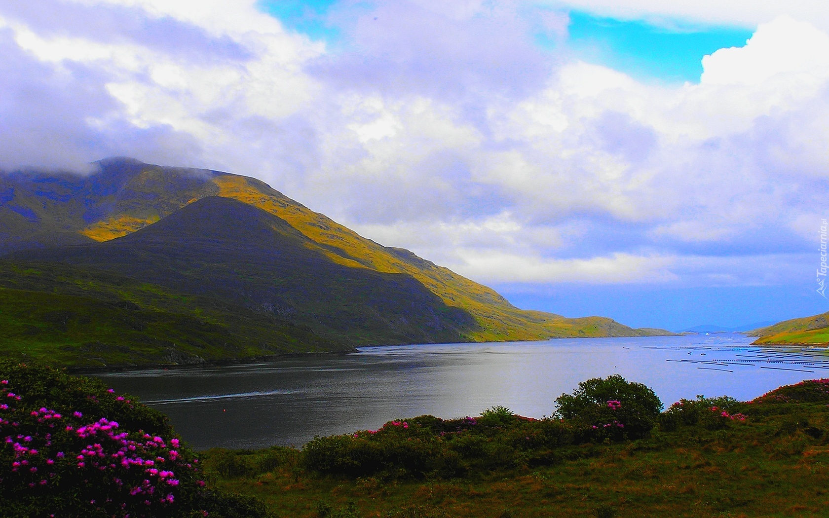 Edytor tapety: Rzeka, Góry, Kwiatki