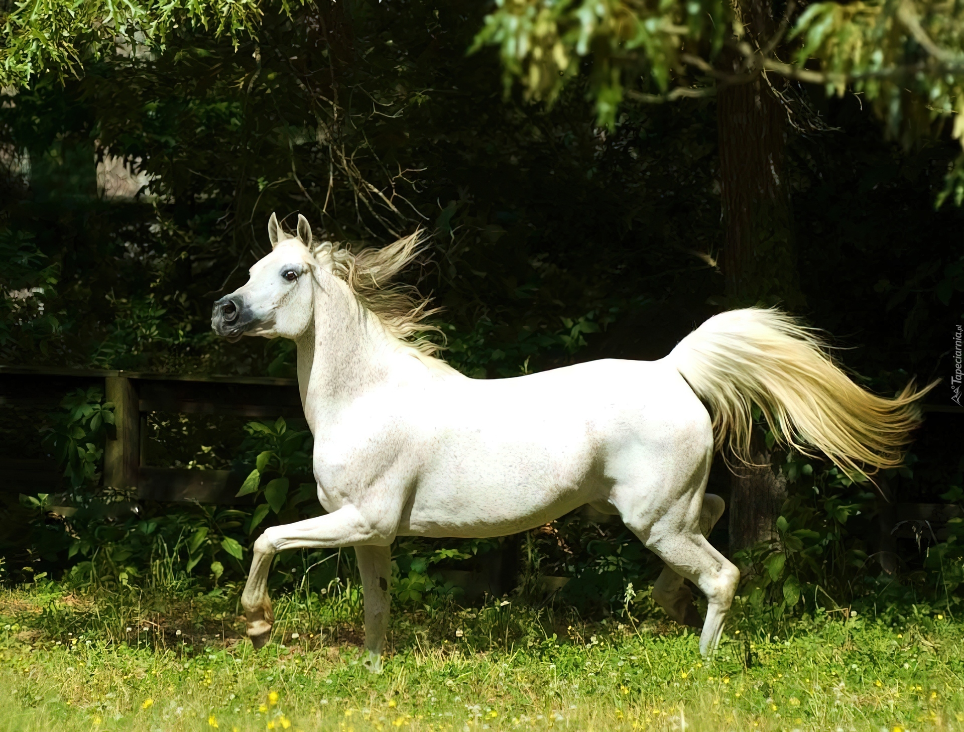 Edytor tapety: Siwy, Koń, Bieg, Rozwiana, Grzywa, Ogon