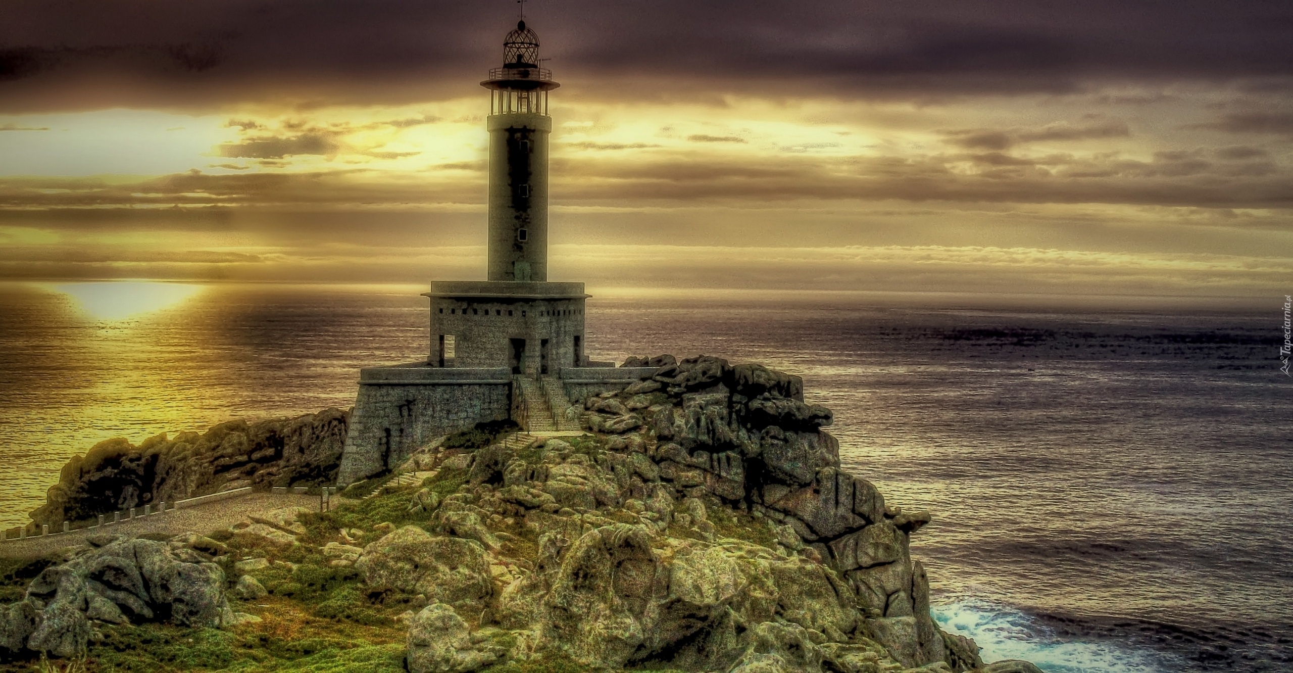 Edytor tapety: Latarnia, Morska, Morze, Skała, Zachód, Słonca