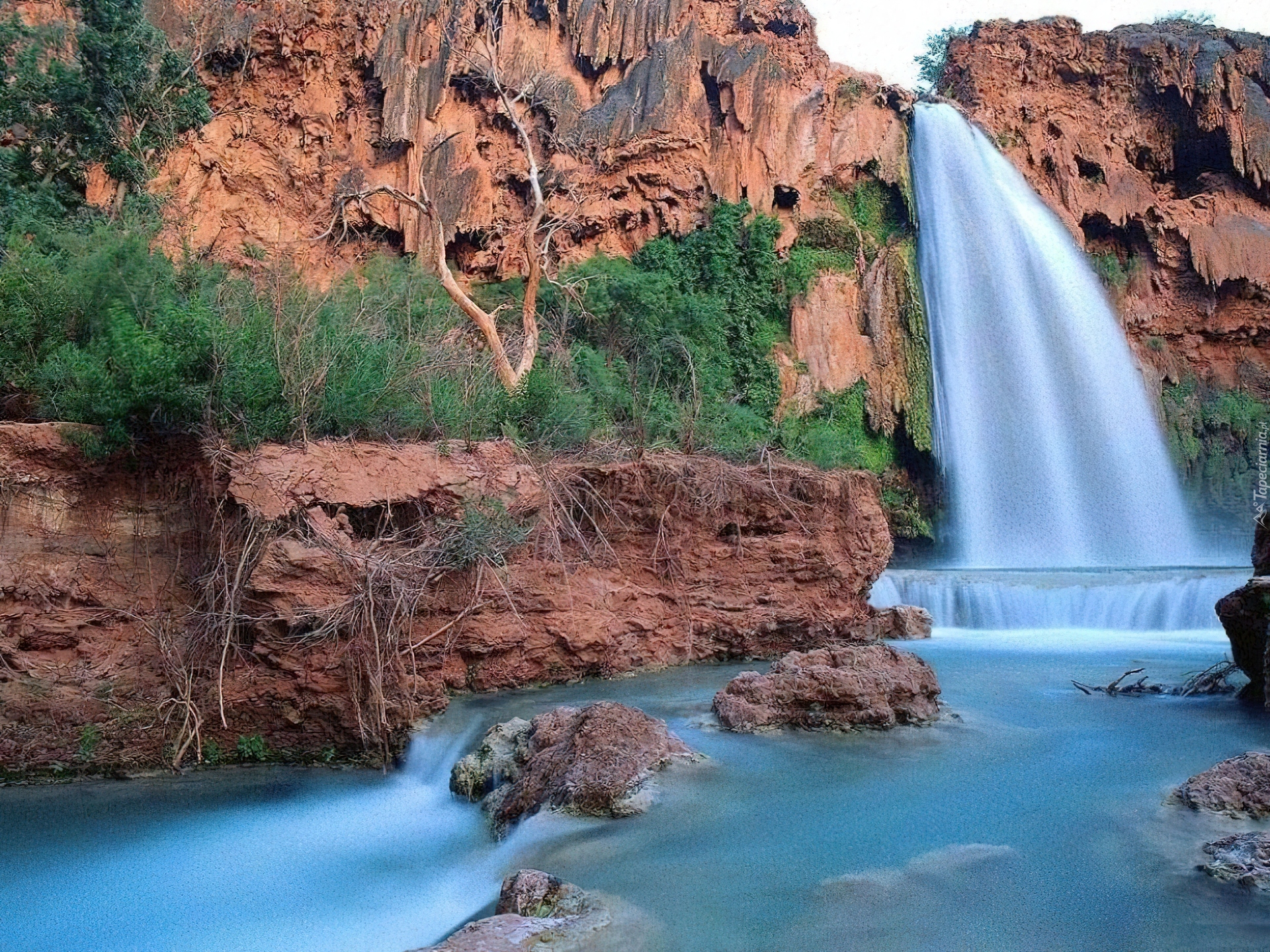 Edytor tapety: Góry, Wodospad, Krzew