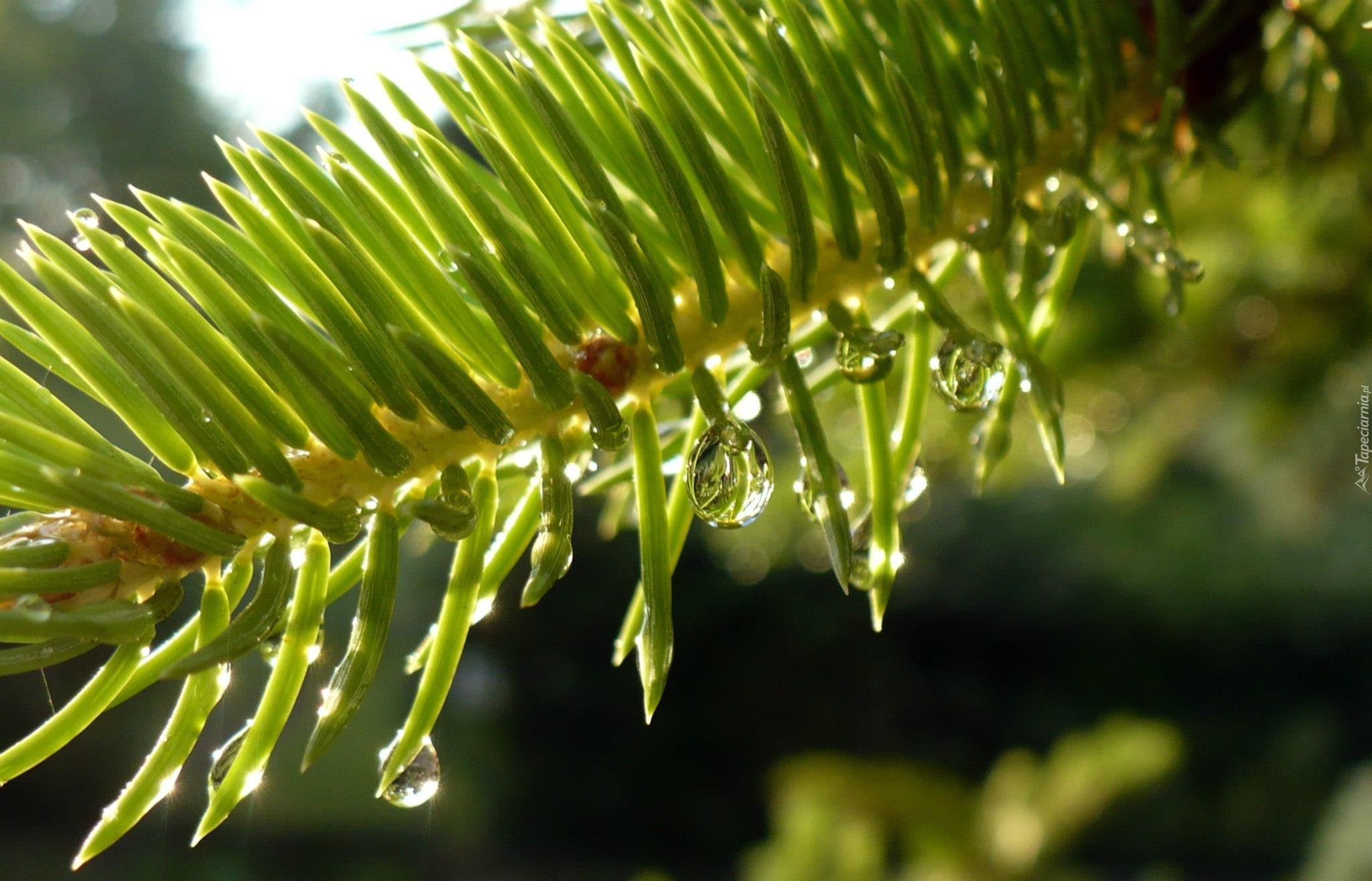 Edytor tapety: Gałązka, Świerku, Kropelki
