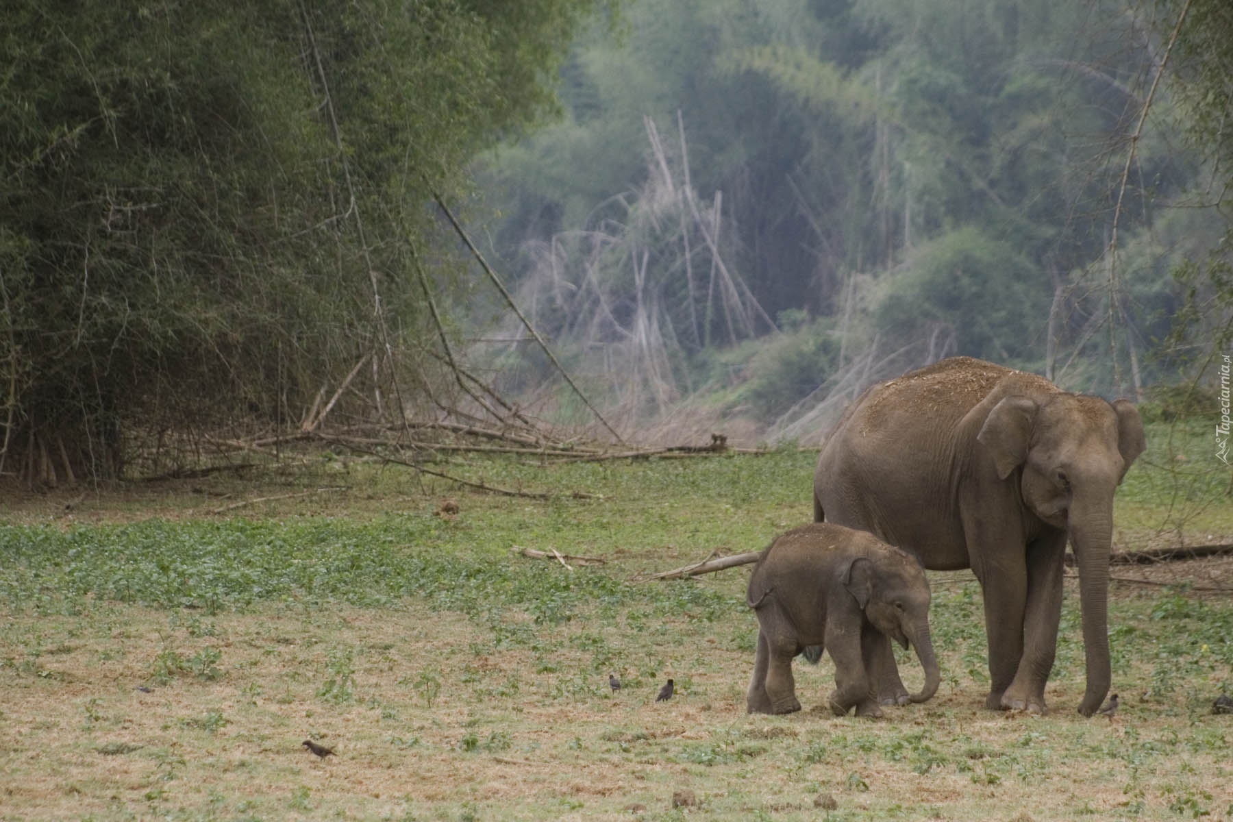 Edytor tapety: Dwa, Słonie, Las, Tropikalny, Polana