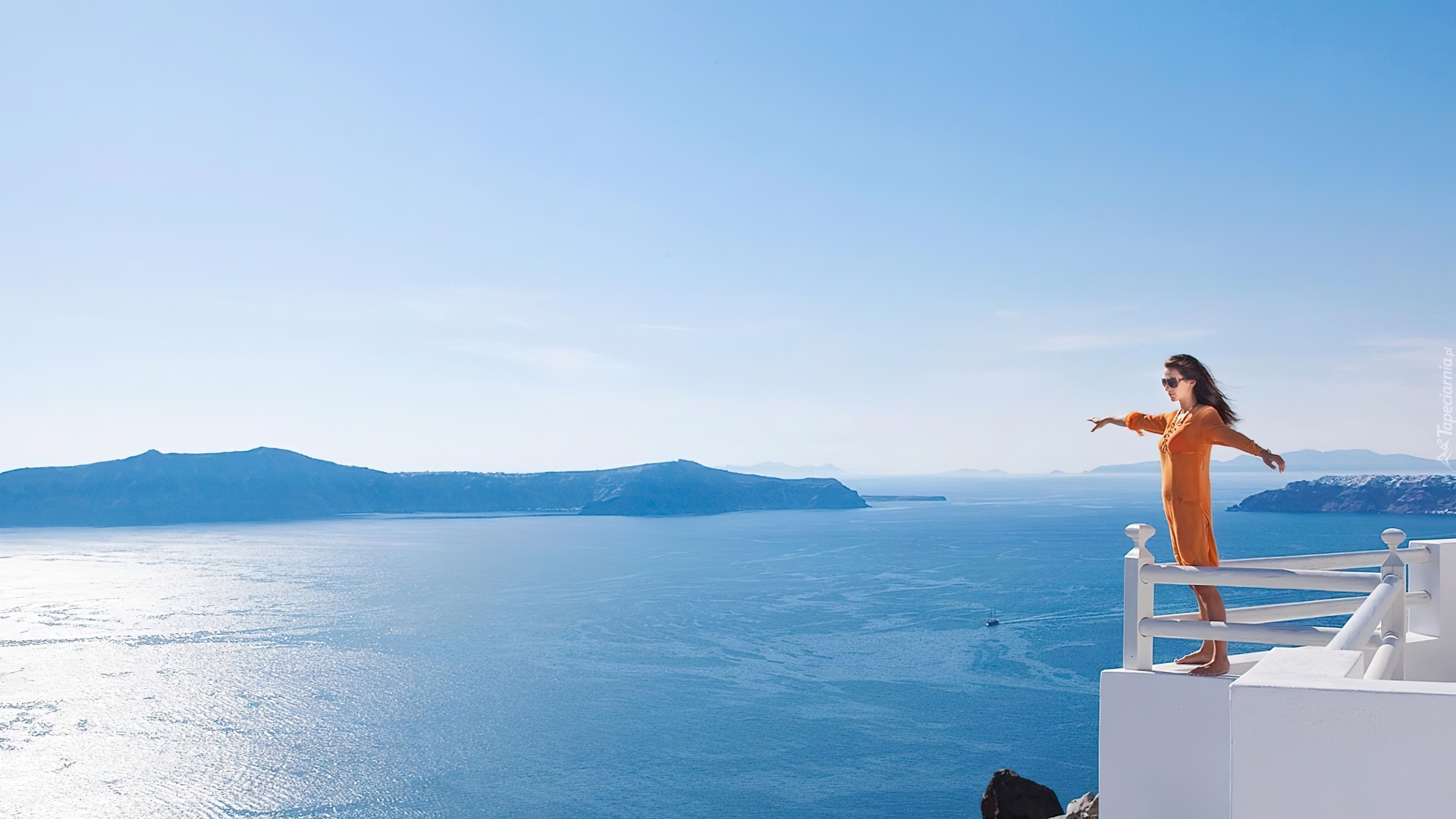 Edytor tapety: Kobieta, Morze, Santorini, Grecja