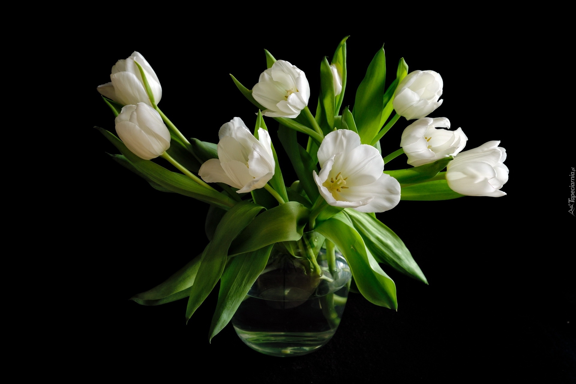 Edytor tapety: Białe, Tulipany, Wazon