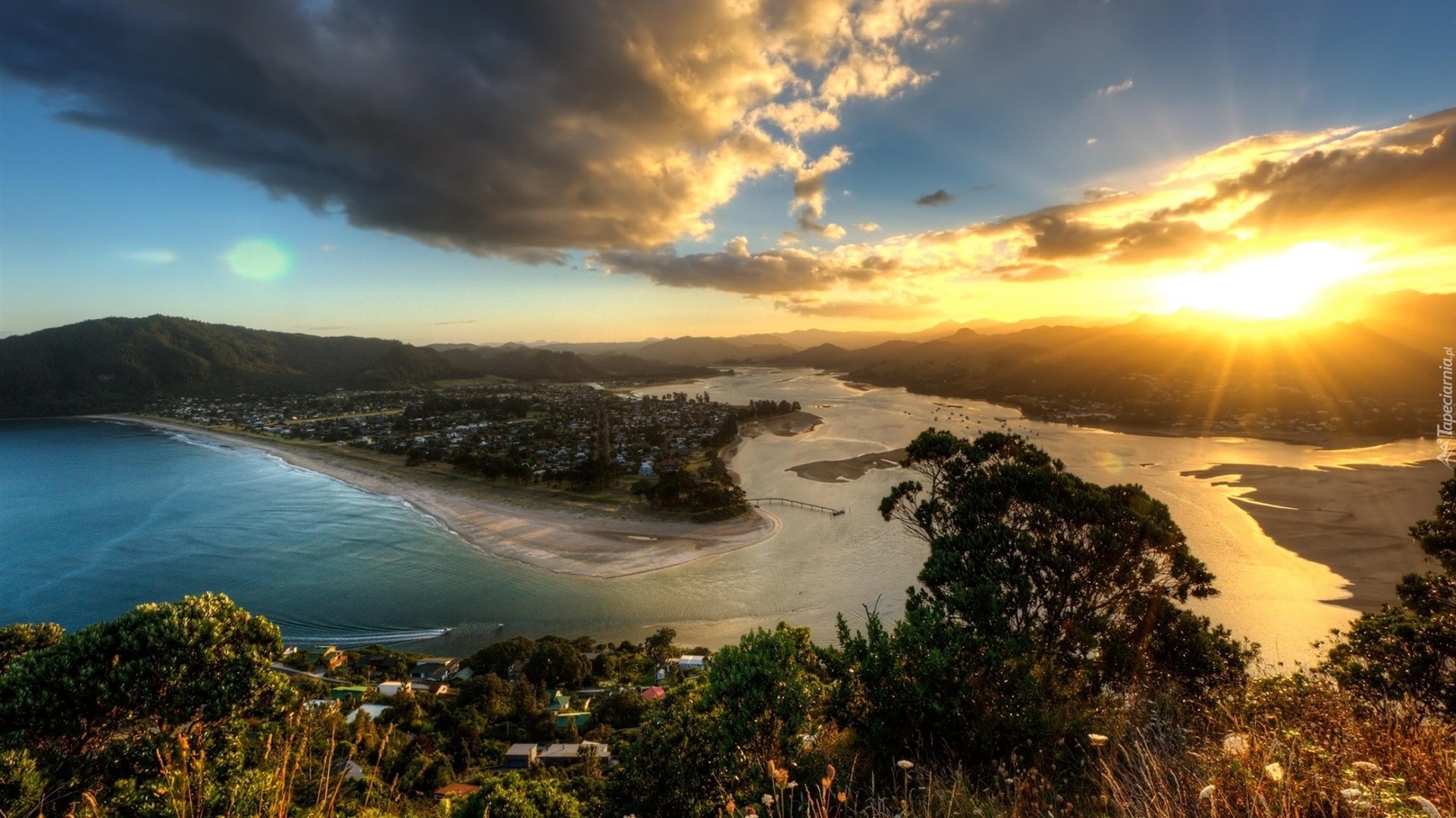 Edytor tapety: Rzeka, Chmury, Zachód Słońca, Tairua, Nowa Zelandia
