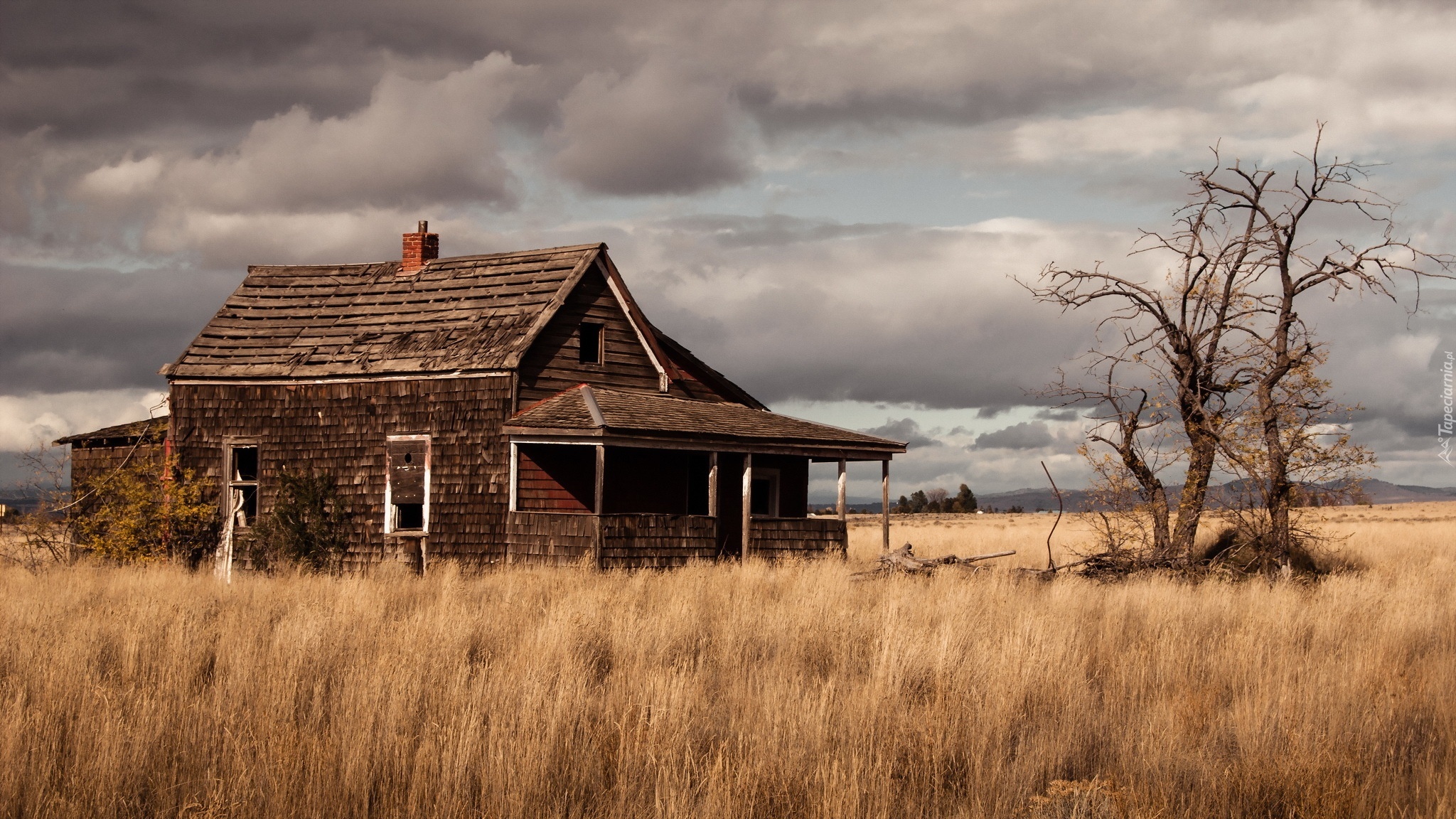 Edytor tapety: Chmury, Drzewa, Opuszczony, Dom