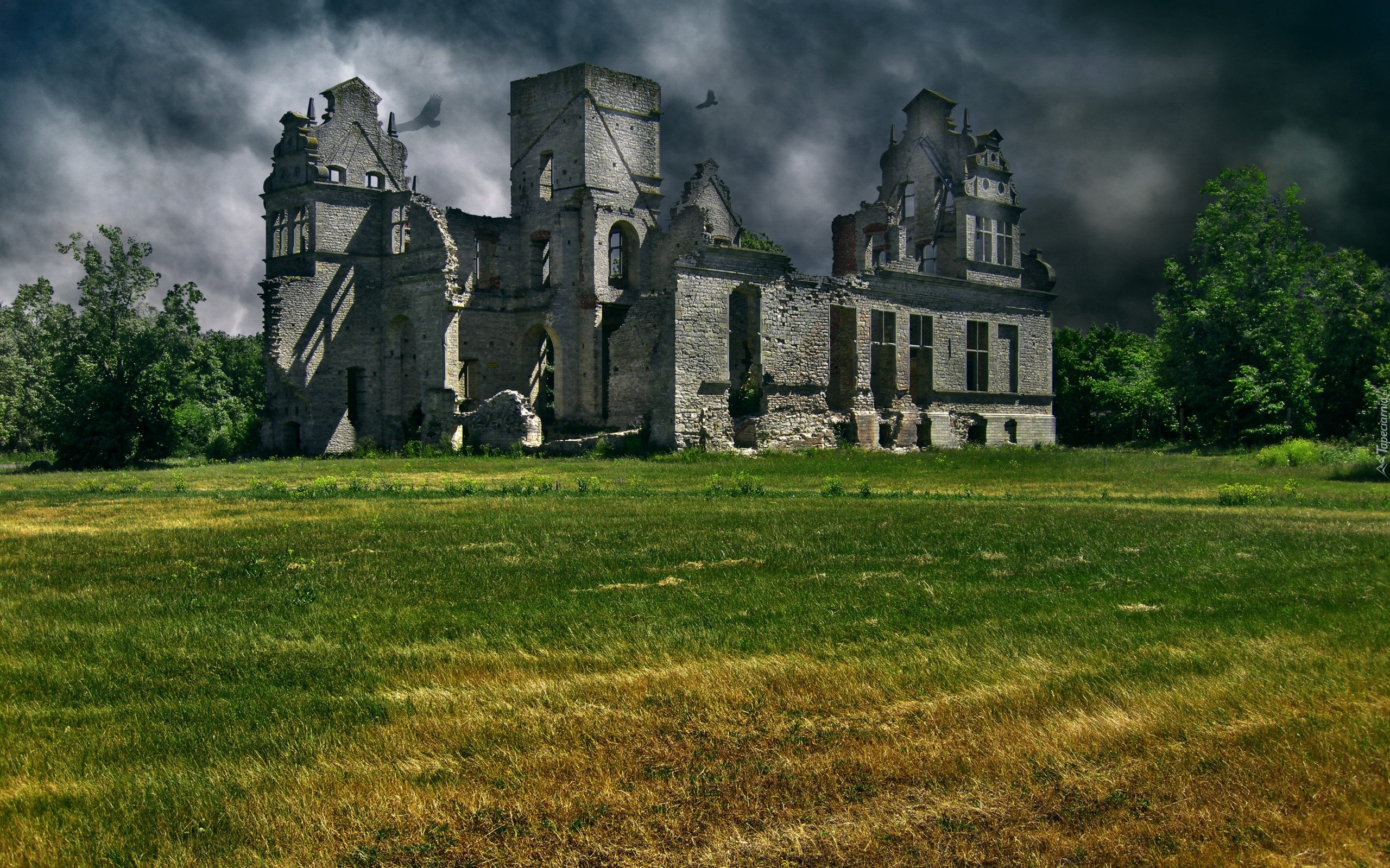 Edytor tapety: Chmury, Łąka, Ruiny, Zamku