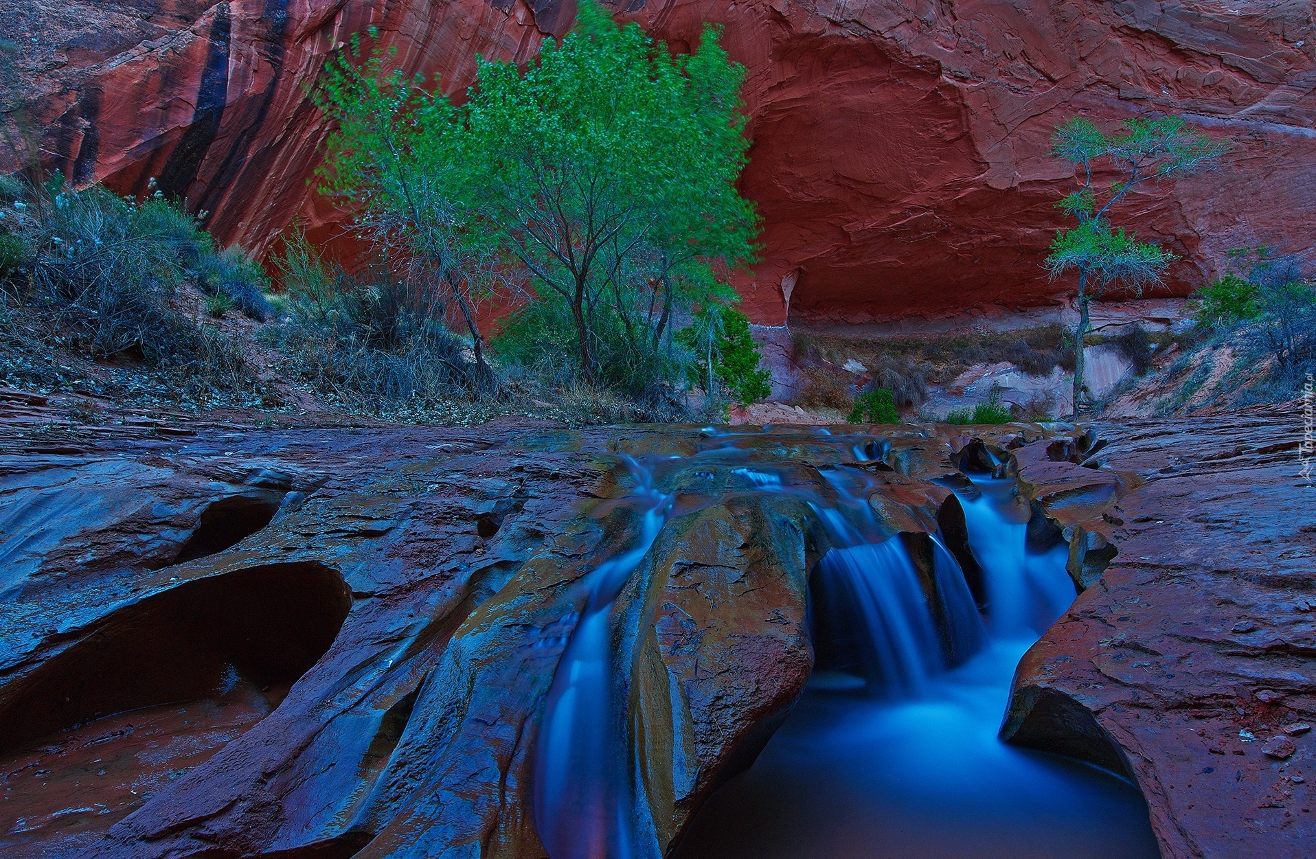 Edytor tapety: Kanion, Utah, Rzeczka, Wodospad, Krzewy
