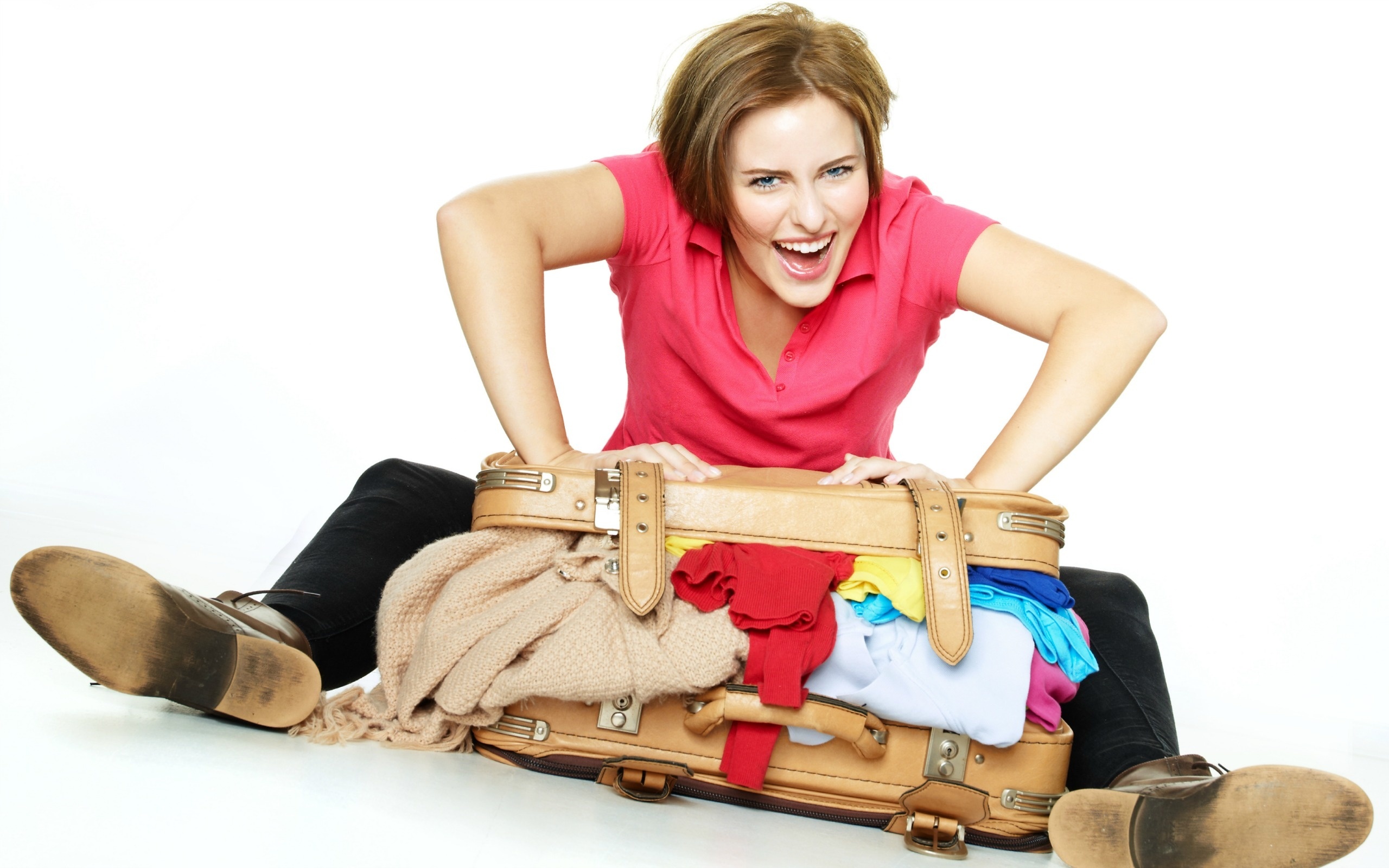 Edytor tapety: Wesoła, Studentka, Waliza, Wakacje