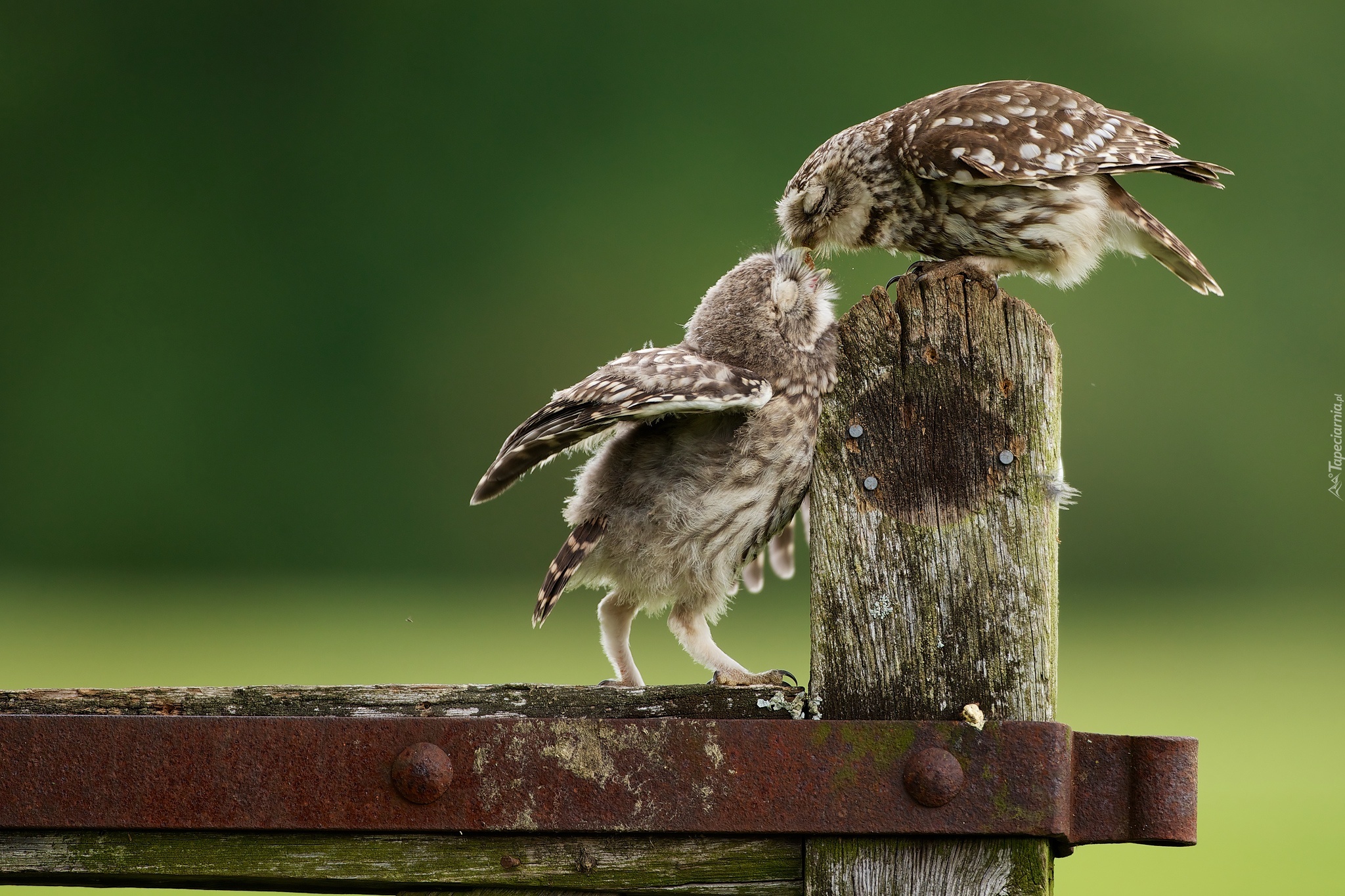 Edytor tapety: Dwie, Sowy, Pójdźki, Płotek