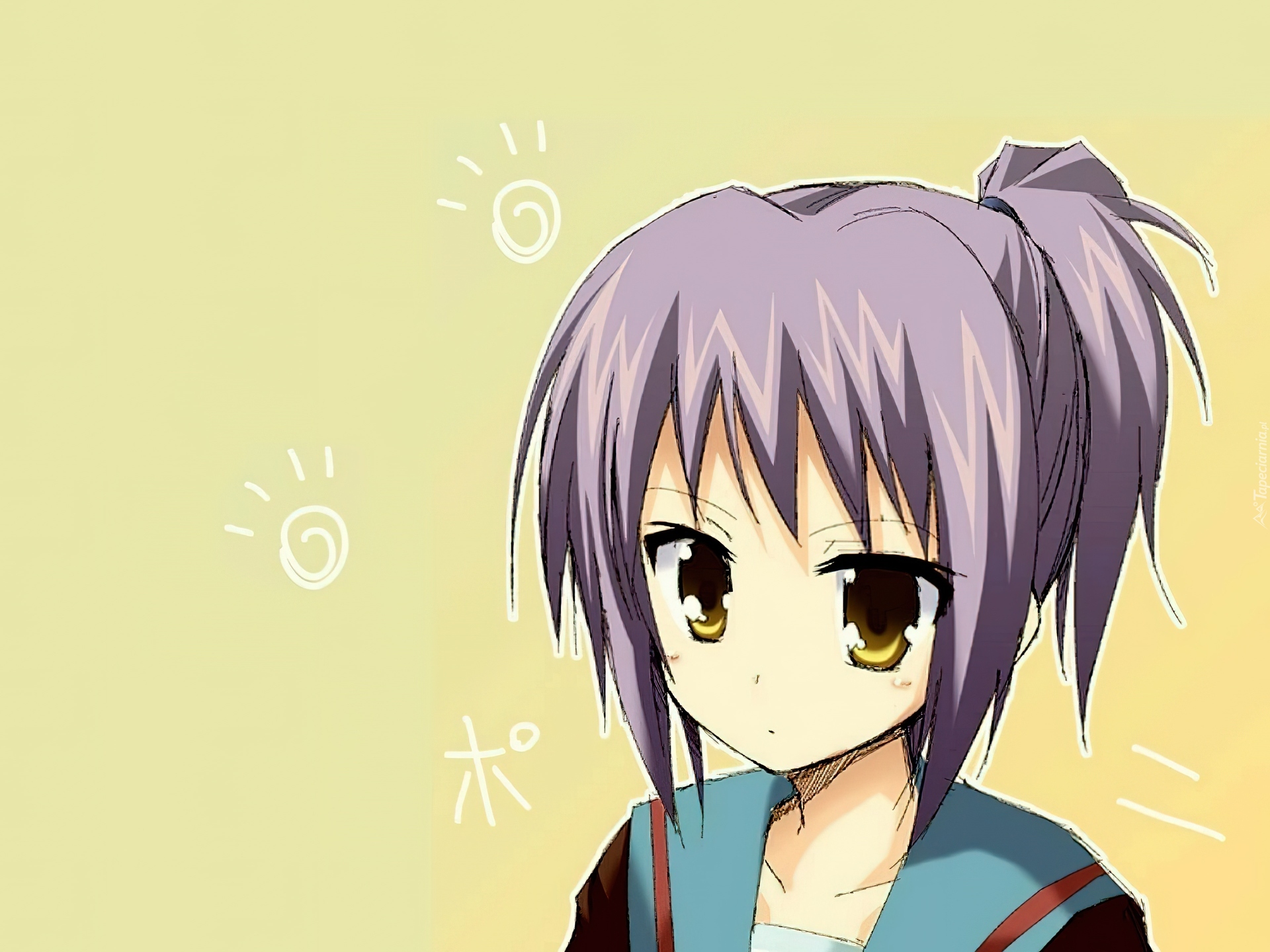 Edytor tapety: Suzumiya Haruhi No Yuuutsu, fioletowe włosy, duże oczy